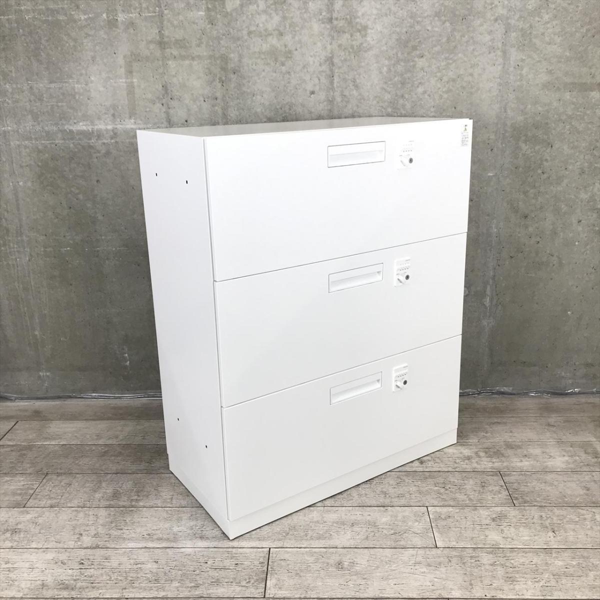 【4台入荷】【収納力抜群の3段ラテラル書庫!A4書類が大量に収納可能!】■コクヨ(KOKUYO)製 エディア(EDIA)シリーズ 3段ラテラル ローキャビネット ■天板/ベース付き ■ホワイト ■シリンダー錠