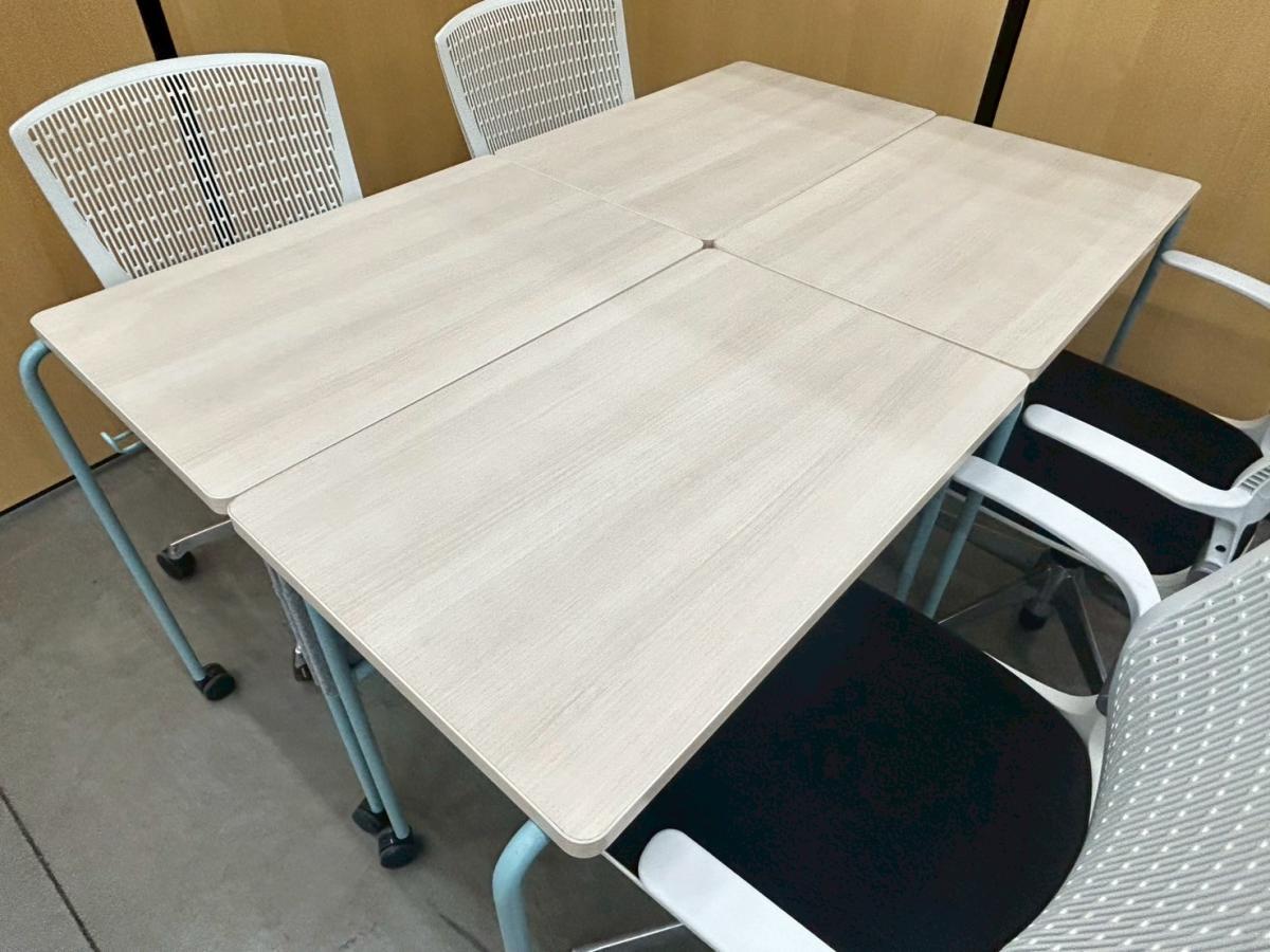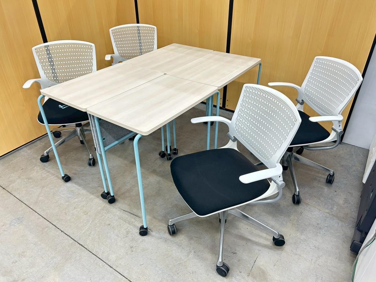 ■デスク4台とチェア4脚セット販売 ■オカムラ(okamura)製 スプリントテーブル グラータチェア ■木目ナチュラル×ブルー脚(デスク) ■幕板付 ■固定肘チェア ■【弊社使用欄:A01009341 A00999494】※配送費につきましては錦糸町店にお問い合わせくださいませ- 在庫数
