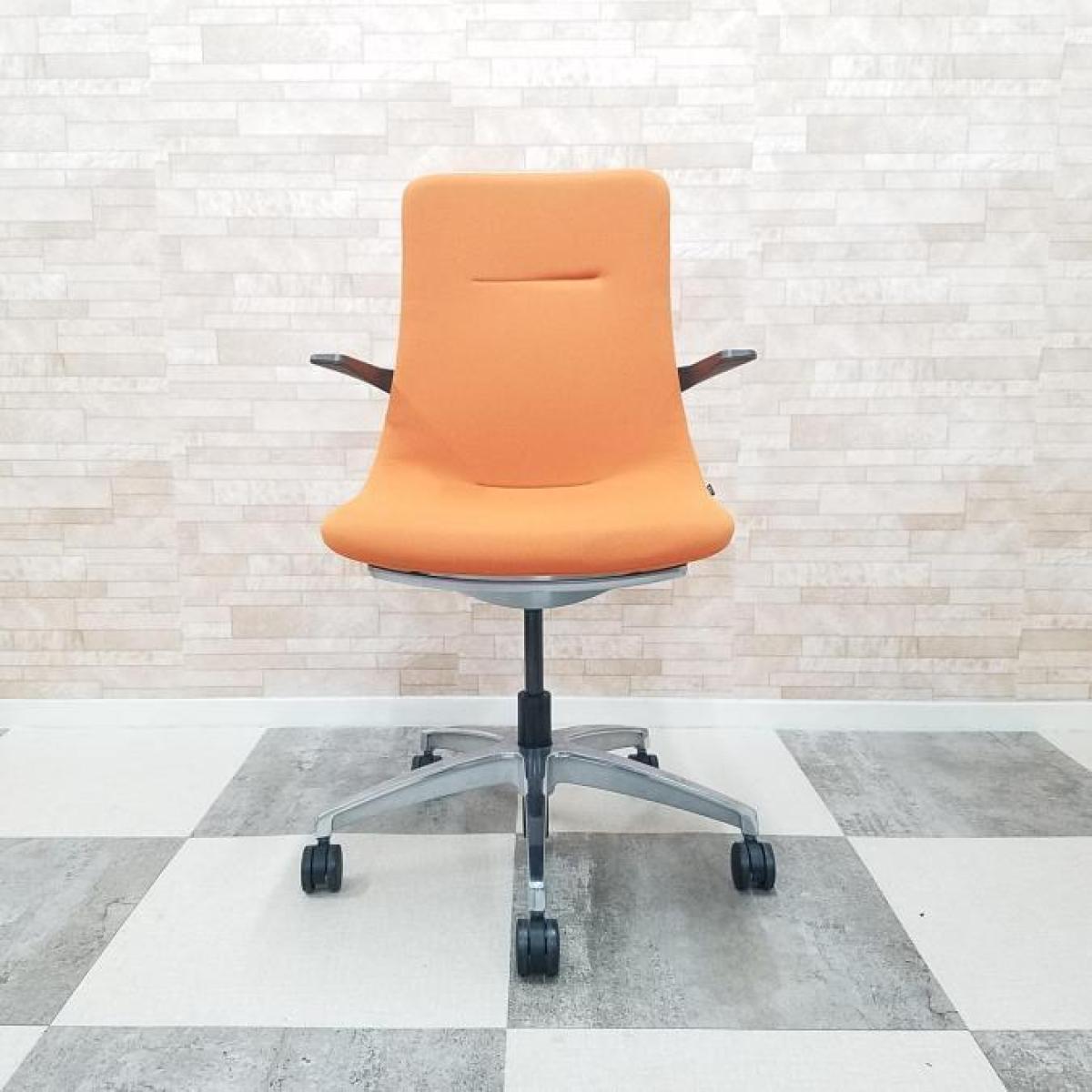 【背と座をなめらかに一体化させた独特のフォルム!】■イトーキ製 モーブチェア(MOVU) ミーティングチェア ■アンバーオレンジ シェル色:ブラウン- 大阪・堺店