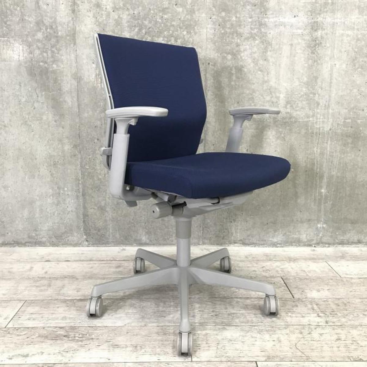 【関西倉庫在庫】■オカムラ(okamura)製 エスクードチェア 肘付ローバックチェア ■ダークブルー×グレーシェル ■デザインアーム ■ランバーサポート 【弊社使用欄:A01029268】