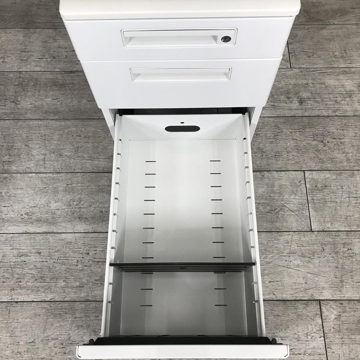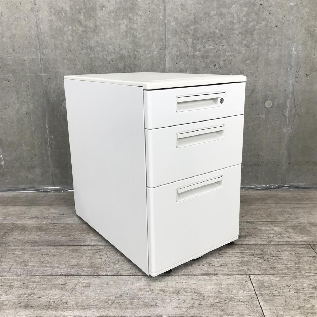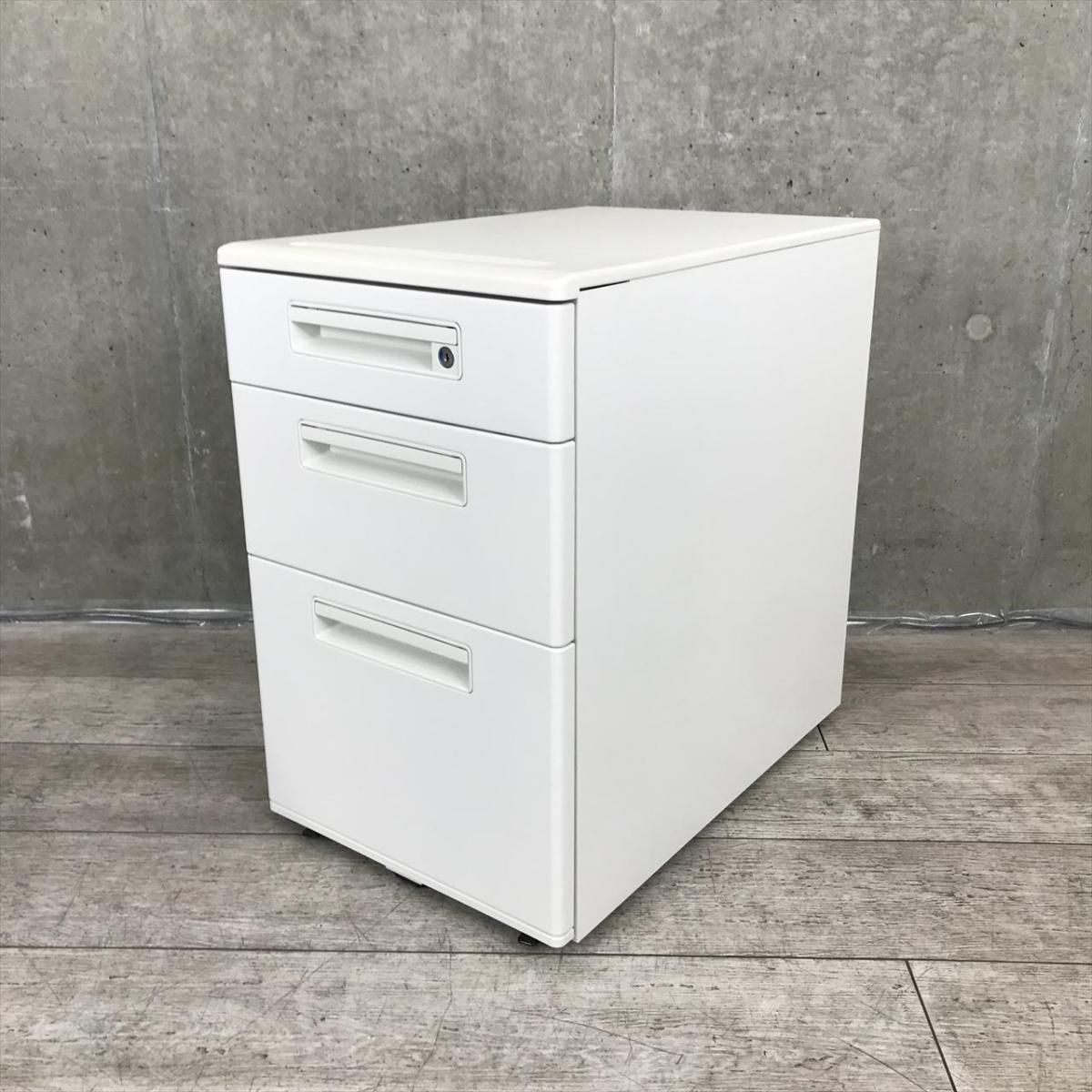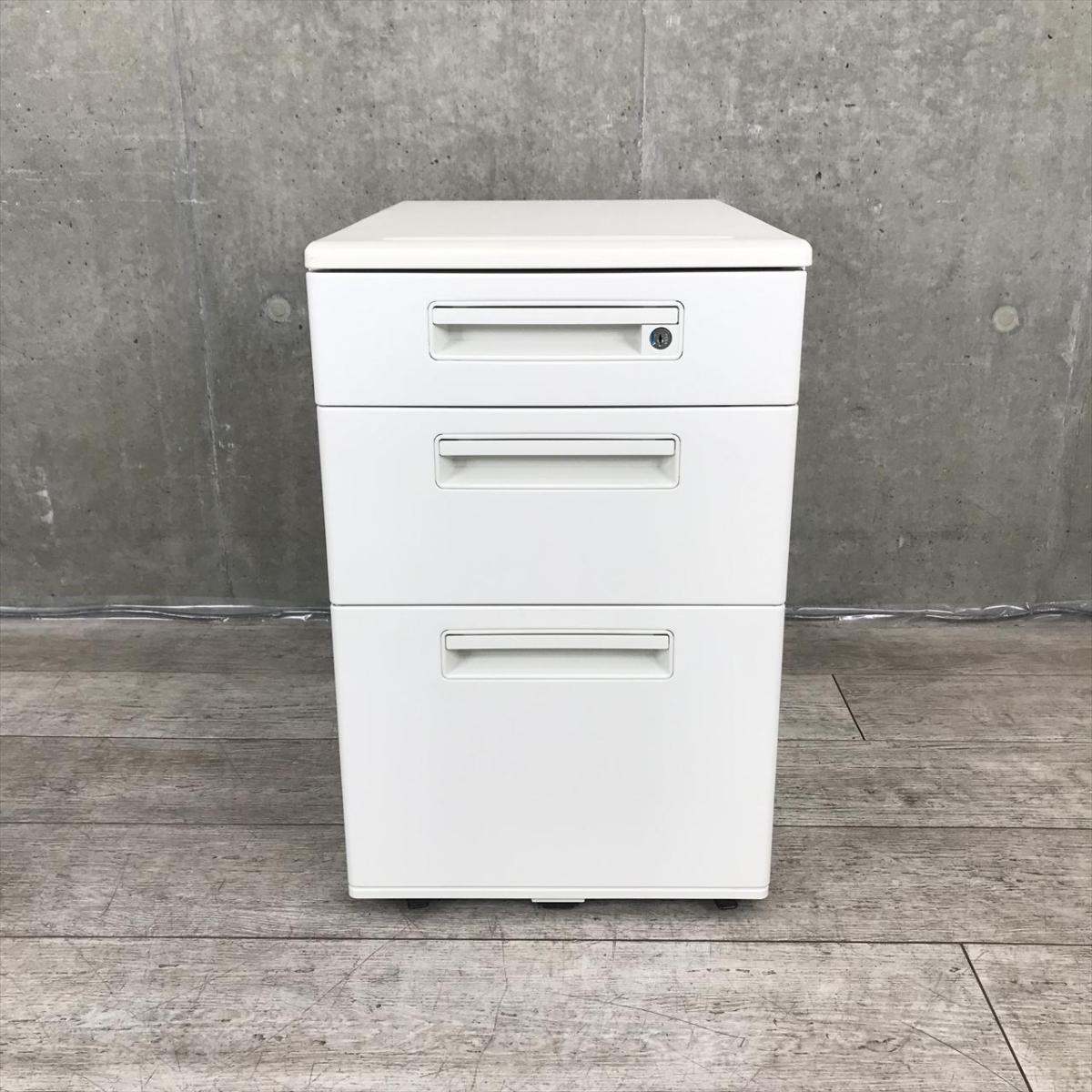 【スタンダードなデザインで使いやすい!キャスター付きホワイトワゴン!】■ナイキ(NAIKI)製 HEHH型 デスクインワゴン 3段ワゴン ■高さ610㎜ ■ホワイト ■シリンダー錠【フリアドデスクや平机の収納力アップに!】- 在庫数