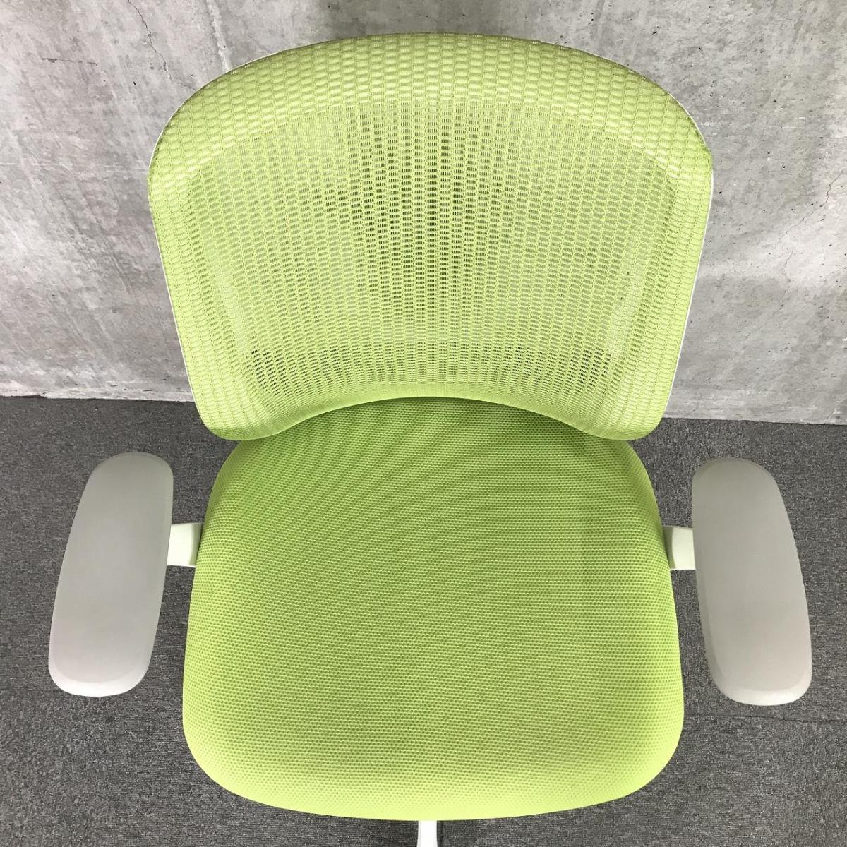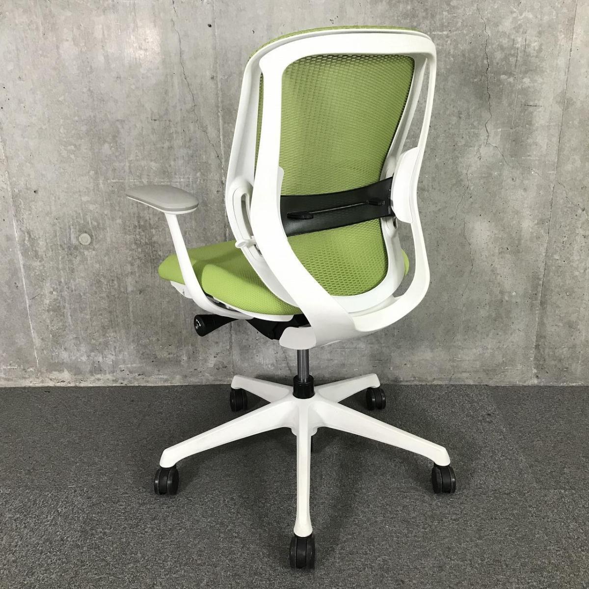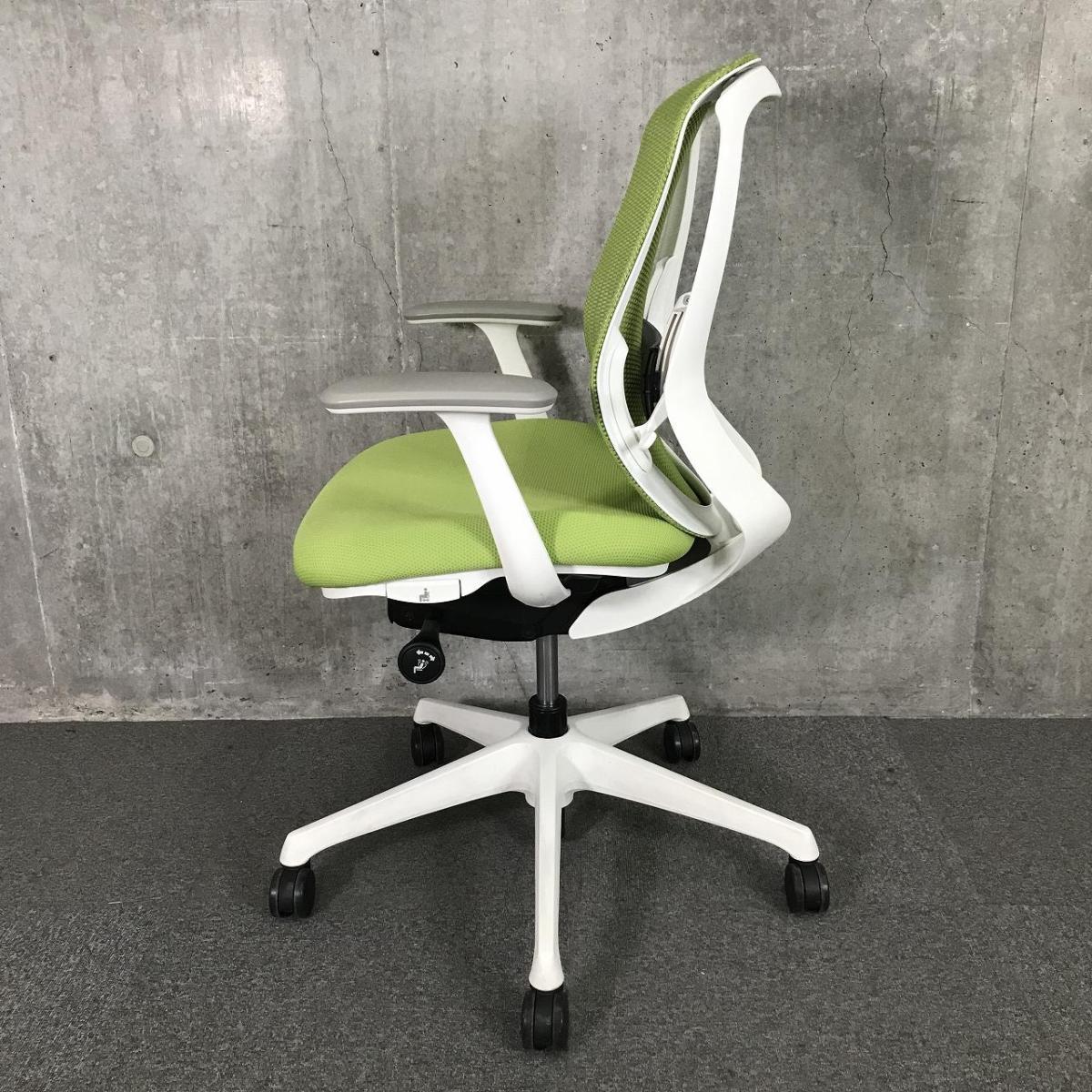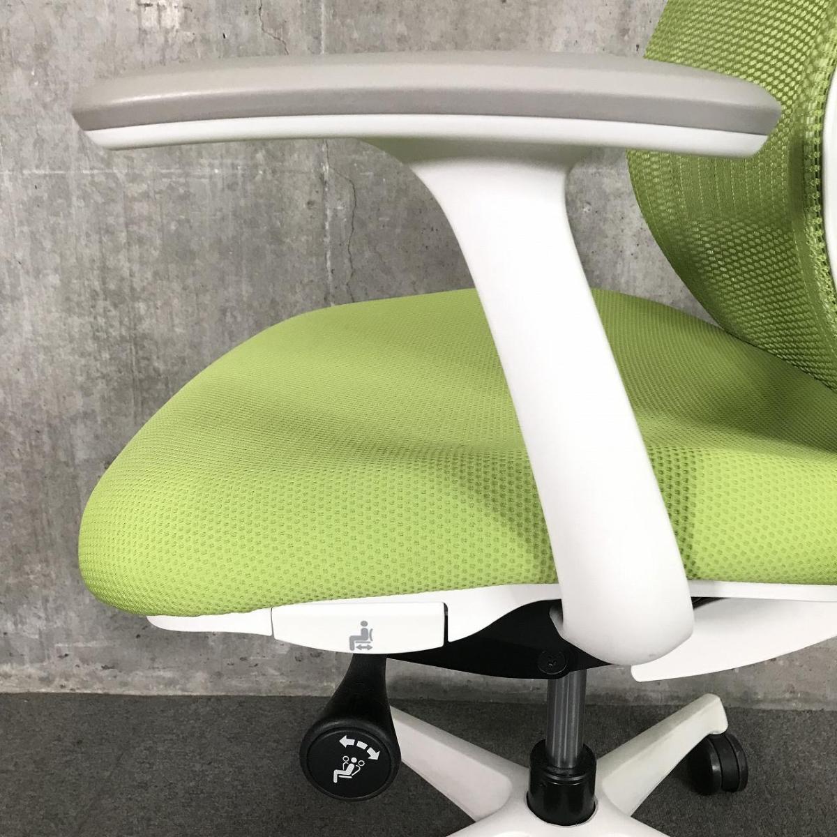 【大人気前傾チェア!背のカーブを変えられる新感覚のオフィスシーティング!】■オカムラ製(Okamua) シルフィー(Sylphy) 肘付ローバック ■ライムグリーン×ホワイトシェル ■固定肘 ■背面メッシュ ■ランバー付サーキュラーバリューCO2削減量の算出について