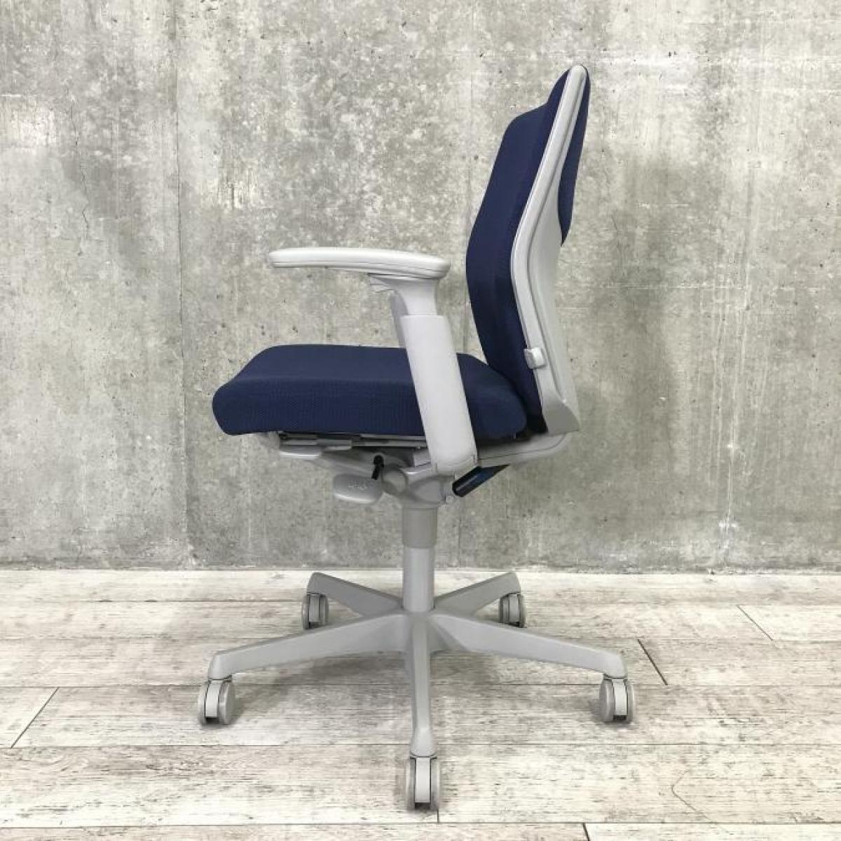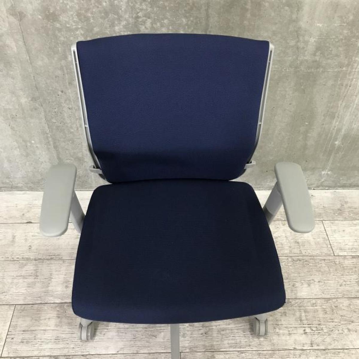 【関西倉庫在庫】■オカムラ(okamura)製 エスクードチェア 肘付ローバックチェア ■ダークブルー×グレーシェル ■デザインアーム ■ランバーサポート 【弊社使用欄:A01029268】