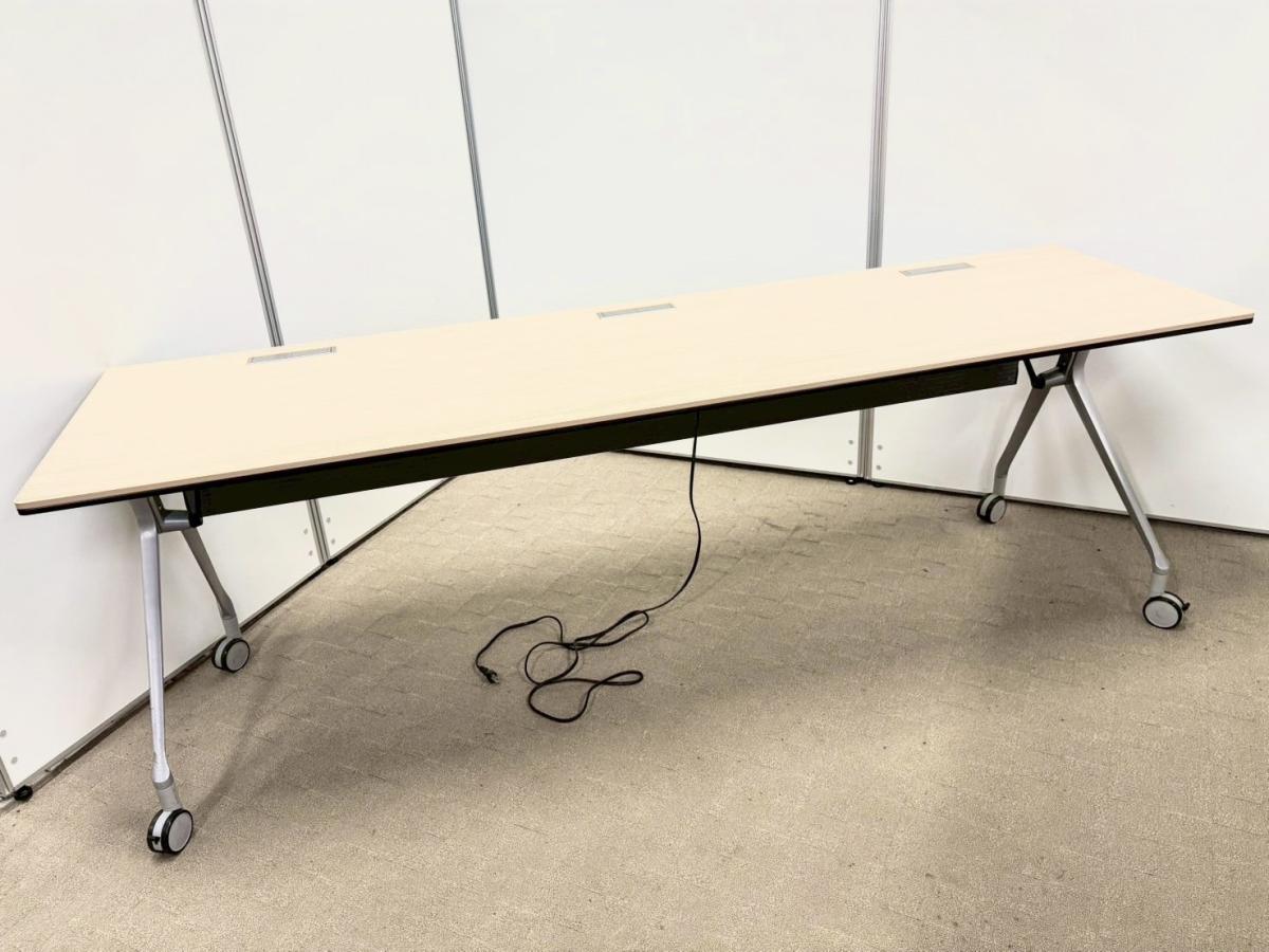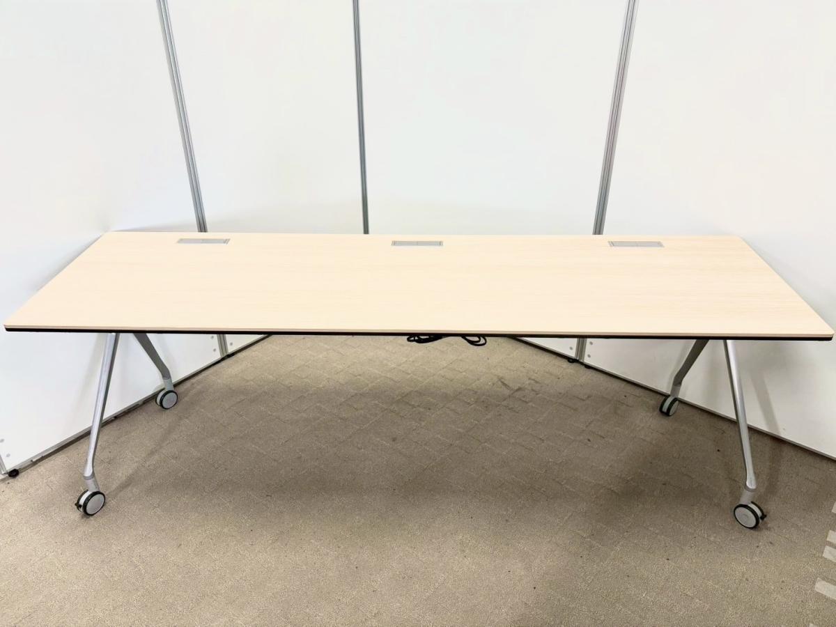 シャープなフォルムがスタイリッシュ!並行スタッキングテーブルが入荷!人気の木目調天板! ■オカムラ/ インターアクトNT(INTERACT)/ナチュラル W2100 配線コード付き- 立川・八王子店