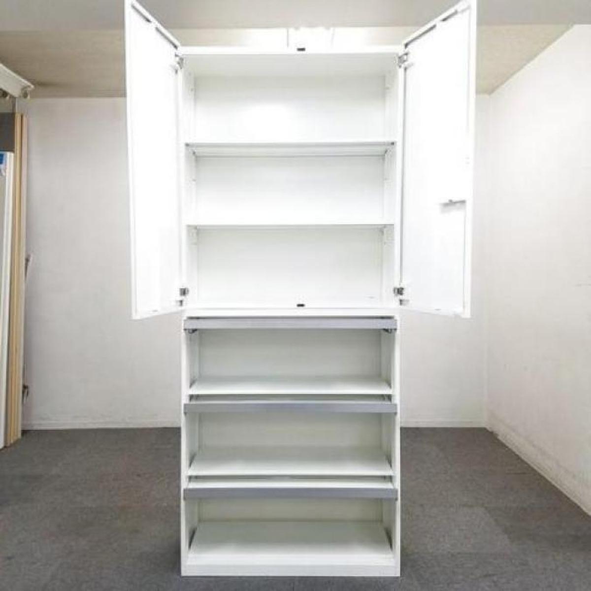 【オープン+両開きの書庫セット!大人気オカムラ製のレクトラインが入荷!】■オカムラ(okamura)製 レクトライン オープン+両開き ハイキャビネット ■ホワイト ■シリンダー錠 ※扉外し商品のため外し跡がございます。