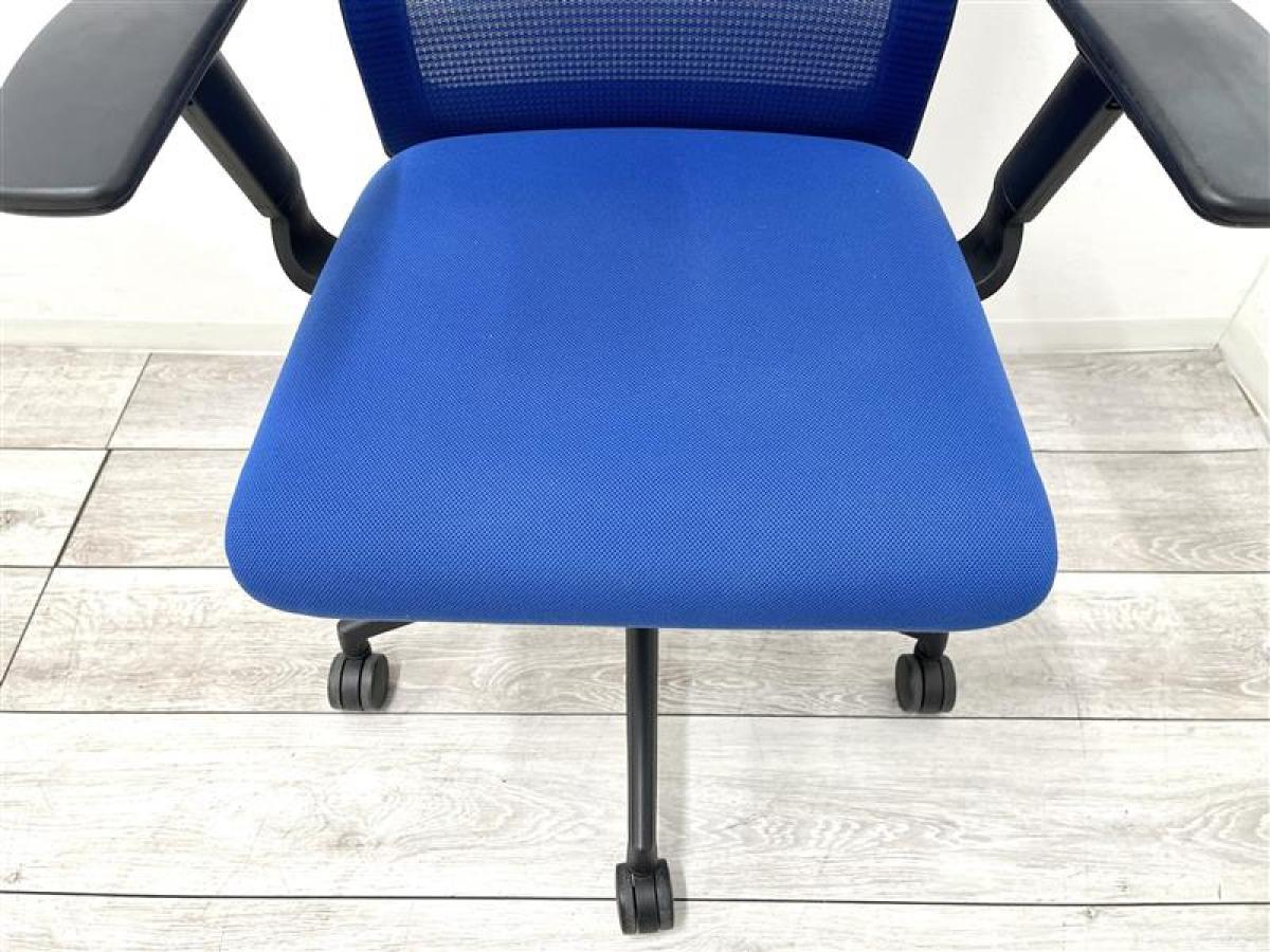 【定価約6万円】【洗練されたデザインで大人気!ワンランク上の座り心地】■ウチダ (UCHIDA) エルフィ (ELFIE) ミドルバック肘付き ■可動肘 背面メッシュ ■ハンガー付 ■マリンブルー×ブラックフレーム- 仙台店
