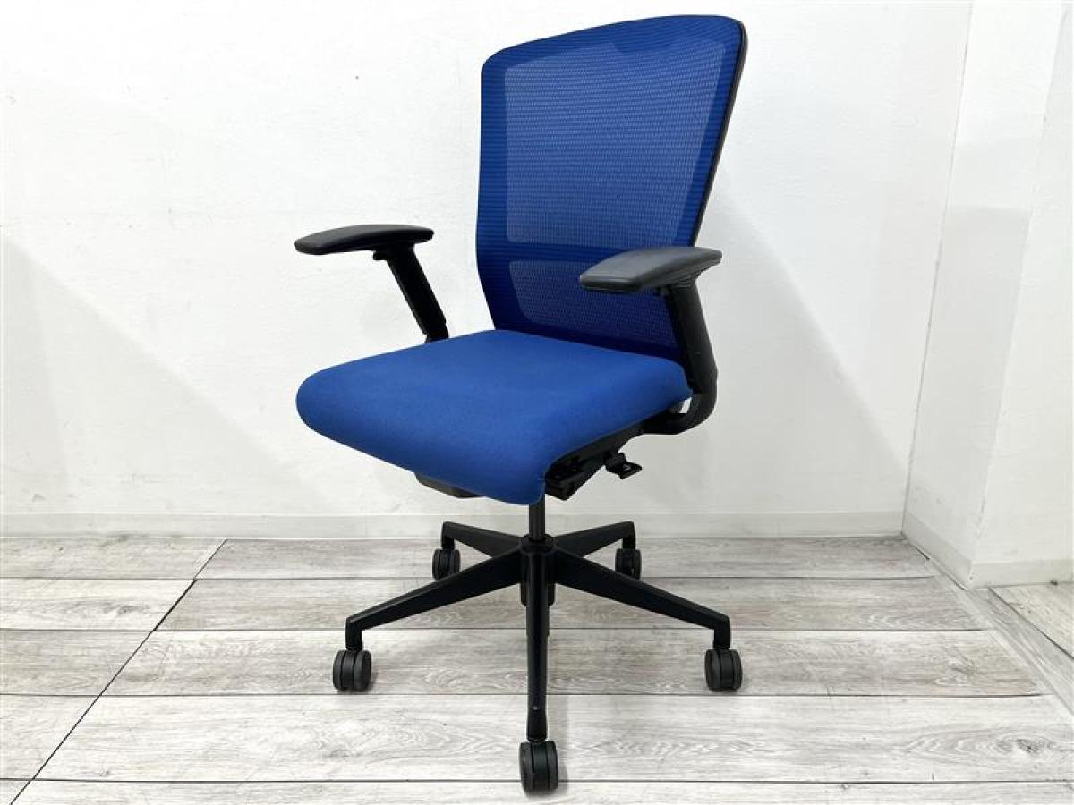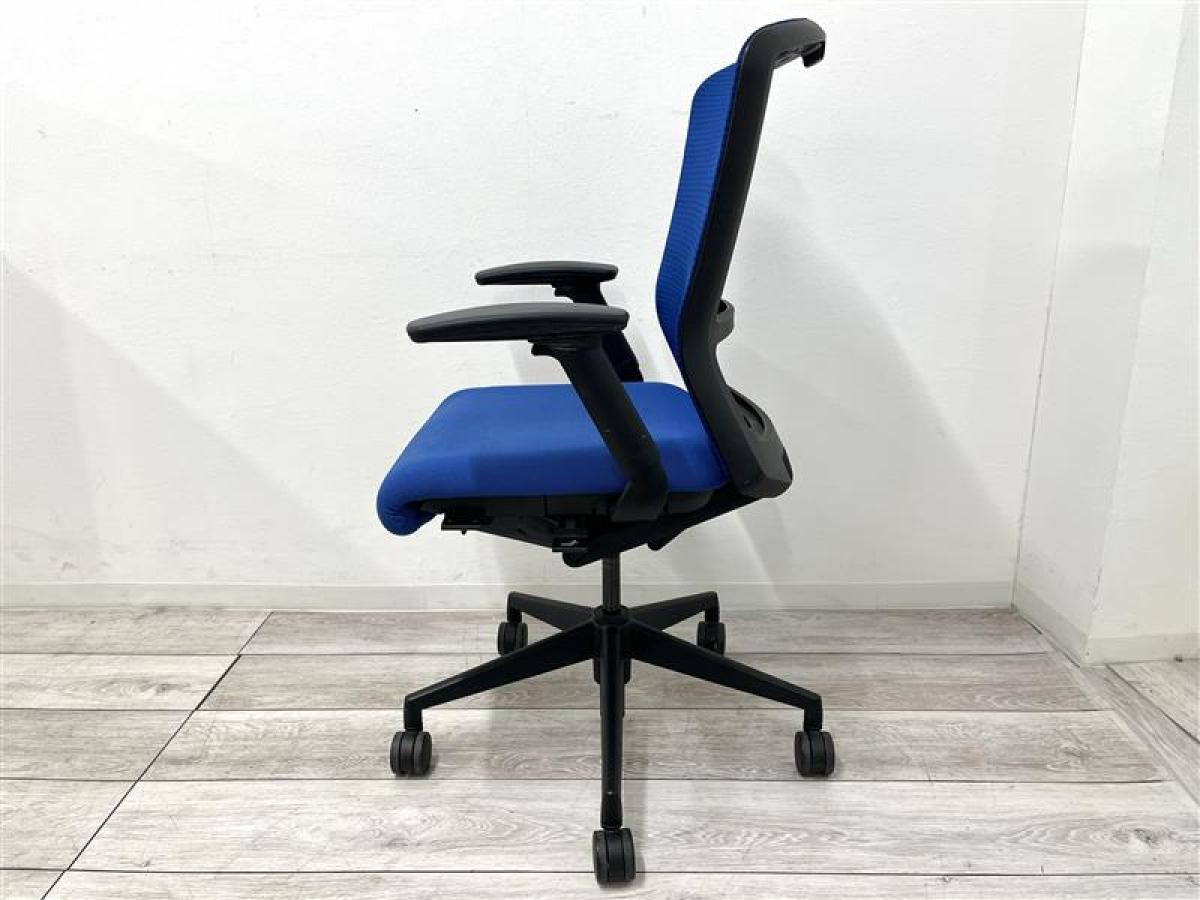 【定価約6万円】【洗練されたデザインで大人気!ワンランク上の座り心地】■ウチダ (UCHIDA) エルフィ (ELFIE) ミドルバック肘付き ■可動肘 背面メッシュ ■ハンガー付 ■マリンブルー×ブラックフレーム- 仙台店