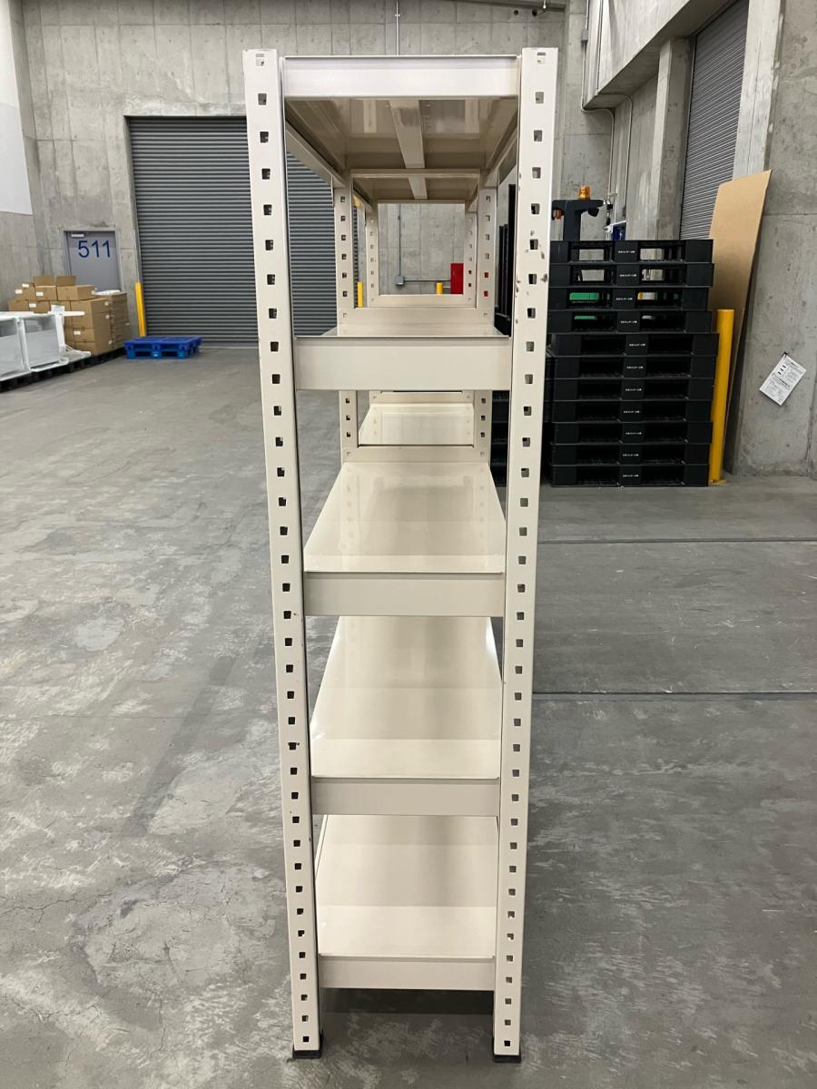 中量ラックの2連(単体+連結)中古ラックが大量15set初入荷しました!! 扶桑金属工業製 天地5段 耐荷重:段/300kg 注)検索し易いようにW1200としておりますが、実寸は2台分の長さのW2450mmになります。 注2)呼称H1800 実寸H1805 ボルトレスなので組立も簡単! ! 同シリーズのサイズ違い(W1500タイプとD600タイプ)も入荷しております。 ※マテハン本舗の中古商品は、千葉県柏市に在庫がございます。- マテハン本舗