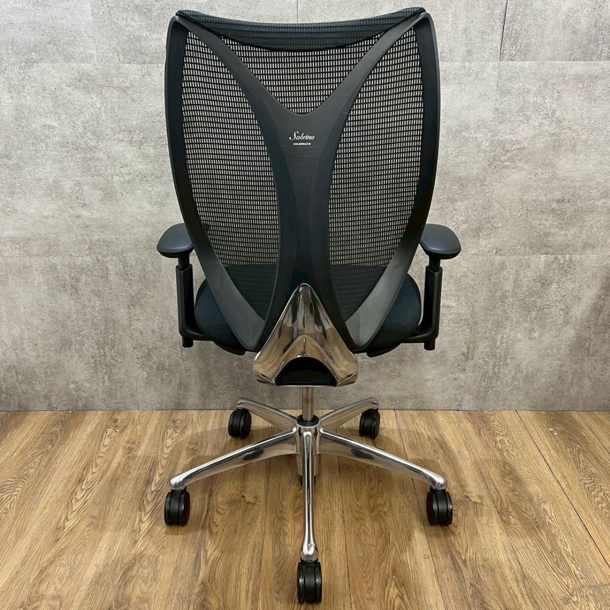 【1脚入荷!!】前傾チルト付!流れるような美しいフォルム!最高級メッシュチェア■オカムラ(okamura)製 Sabrina(サブリナ) ハイバック 可動肘付き ■ブラック【しなやかに、しっかりフィット】【AD】