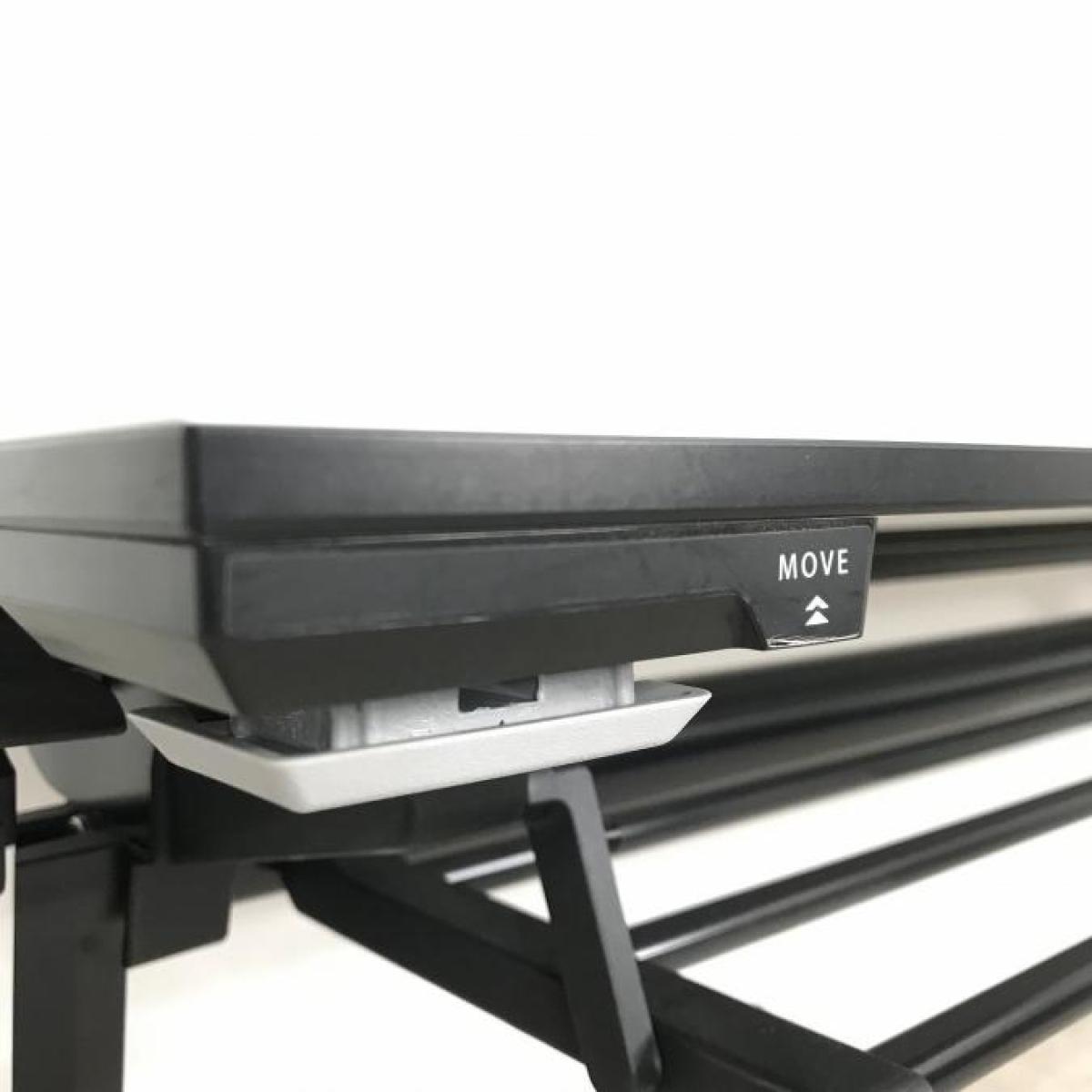 - 一部不具合あり天板歪み、アジャスター無し、キャスター使用不可ようなそのテーブルの本来の効用を果たすための機能以外の一部が使用不可な状態。(例、キャスターロッ ク機能使用不可、棚板無し等がある。)