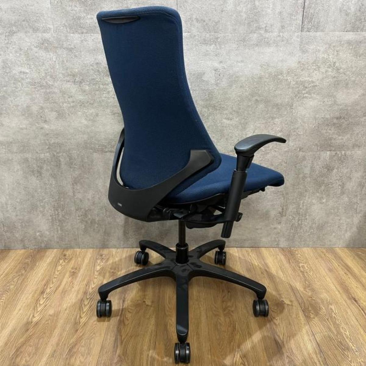 【包み込まれるフィット感!】 ■イトーキ製 エフチェア 肘付 ネイビーブルー ■デスクワークの疲労を軽減!