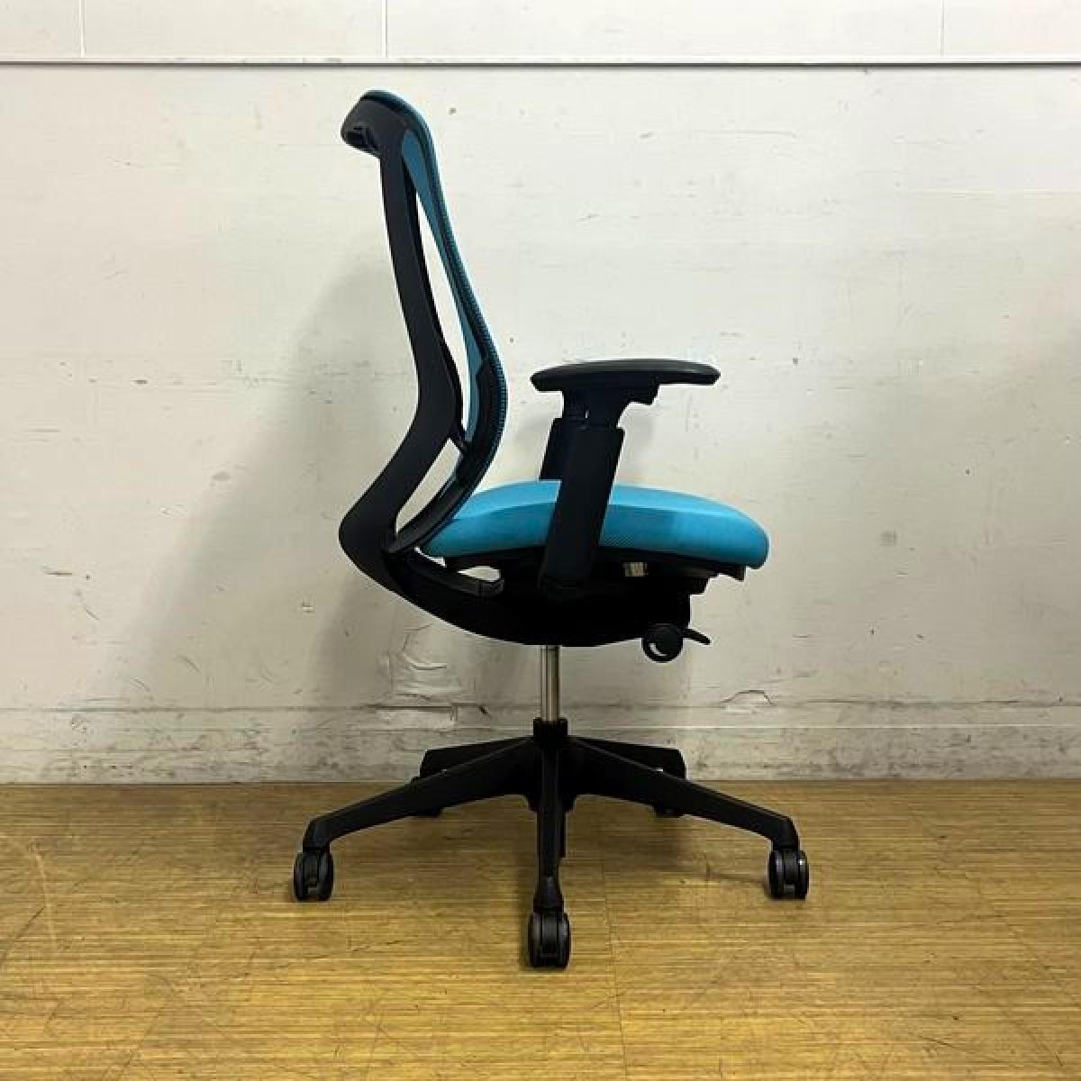 《現物写真だから安心!》オカムラ製の人気オフィスチェア【シルフィーメッシュ/可動肘/ヘッドレスト付き/ブルーグリーン】が先着1名様ご案内可能です!