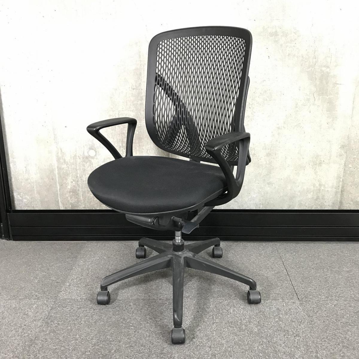【優しく包み込む樹脂メッシュ!熱がこもりにくい背面樹脂メッシュ!】■イナバ製 イエラチェア 肘付ハイバック ■ブラック ■サークル肘 ■背面樹脂メッシュ