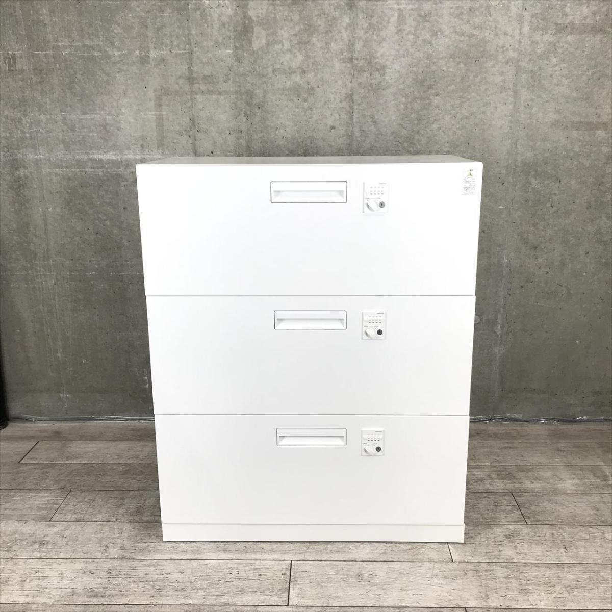 【4台入荷】【収納力抜群の3段ラテラル書庫!A4書類が大量に収納可能!】■コクヨ(KOKUYO)製 エディア(EDIA)シリーズ 3段ラテラル ローキャビネット ■天板/ベース付き ■ホワイト ■シリンダー錠