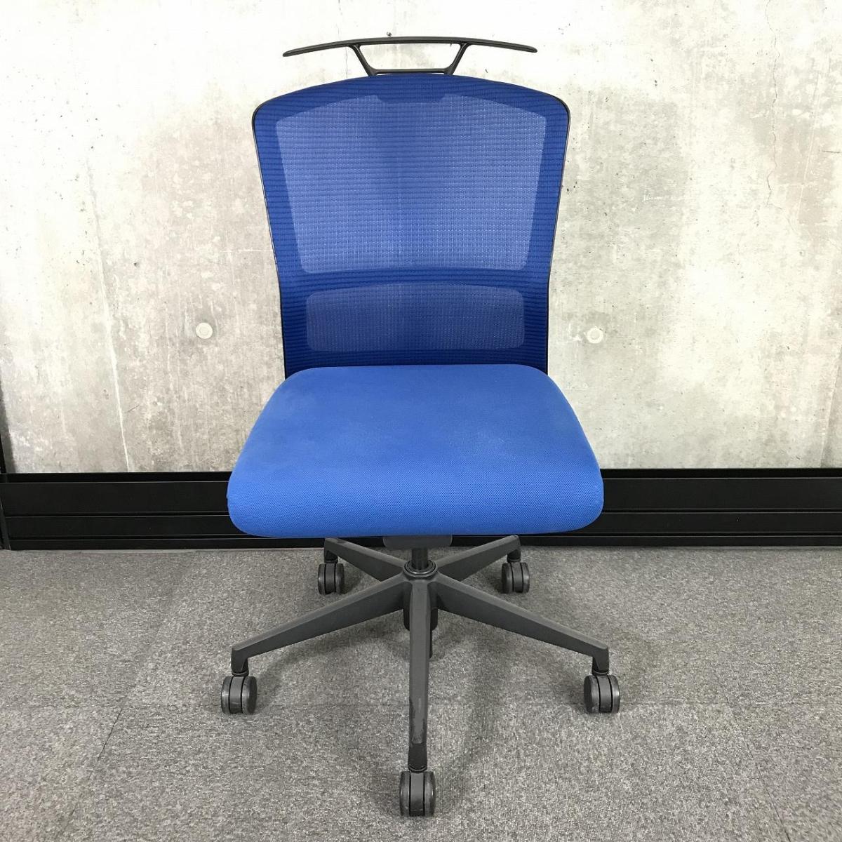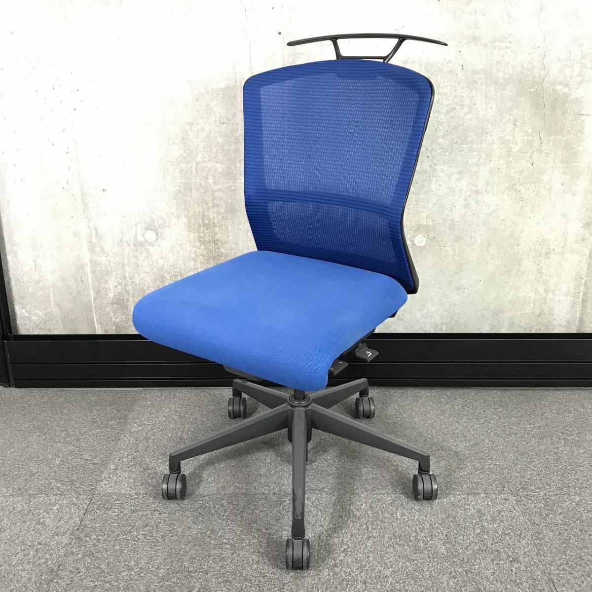 【5脚入荷】【洗練されたデザインで大人気!ワンランク上の座り心地!】■ウチダ (UCHIDA)製 エルフィ (ELFIE) 肘無ミドルバック ■背面メッシュ ■マリンブルー×ブラックフレーム ■ハンガー付 オフィスバスターズ 梅田本店