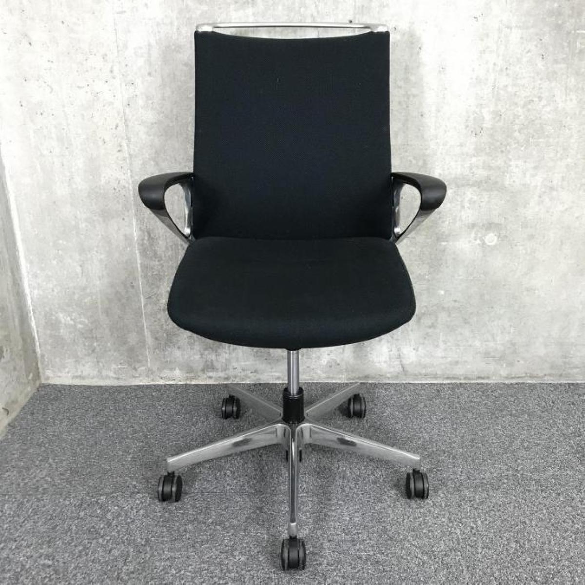 【在庫入替セール】オカムラ モード デザインアーム搭載 ミドルバック ブラック×アルミ脚 張地:クロス(プレーン) 高いデザイン性×シンプルかつ操作性のある機能