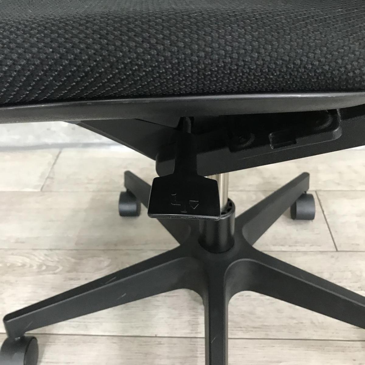 例えば、座面は、イトーキ独自の"ベンディングシート"という機構により、クッション、インターシェル、空洞という三層構造になっています。 この真ん中に挟まっているインナーシェルが、着座時の姿勢に合わせて体重を分散してくれるので、どんな姿勢でも体になじみ、疲労を軽減してくれます。 さらに、座面は前後に4センチほど奥行きを調整でき、前傾姿勢で座りたい、深く腰掛けたい、膝裏を圧迫されたくないなど、個人の好みに合った快適さにカスタマイズが可能となっています。