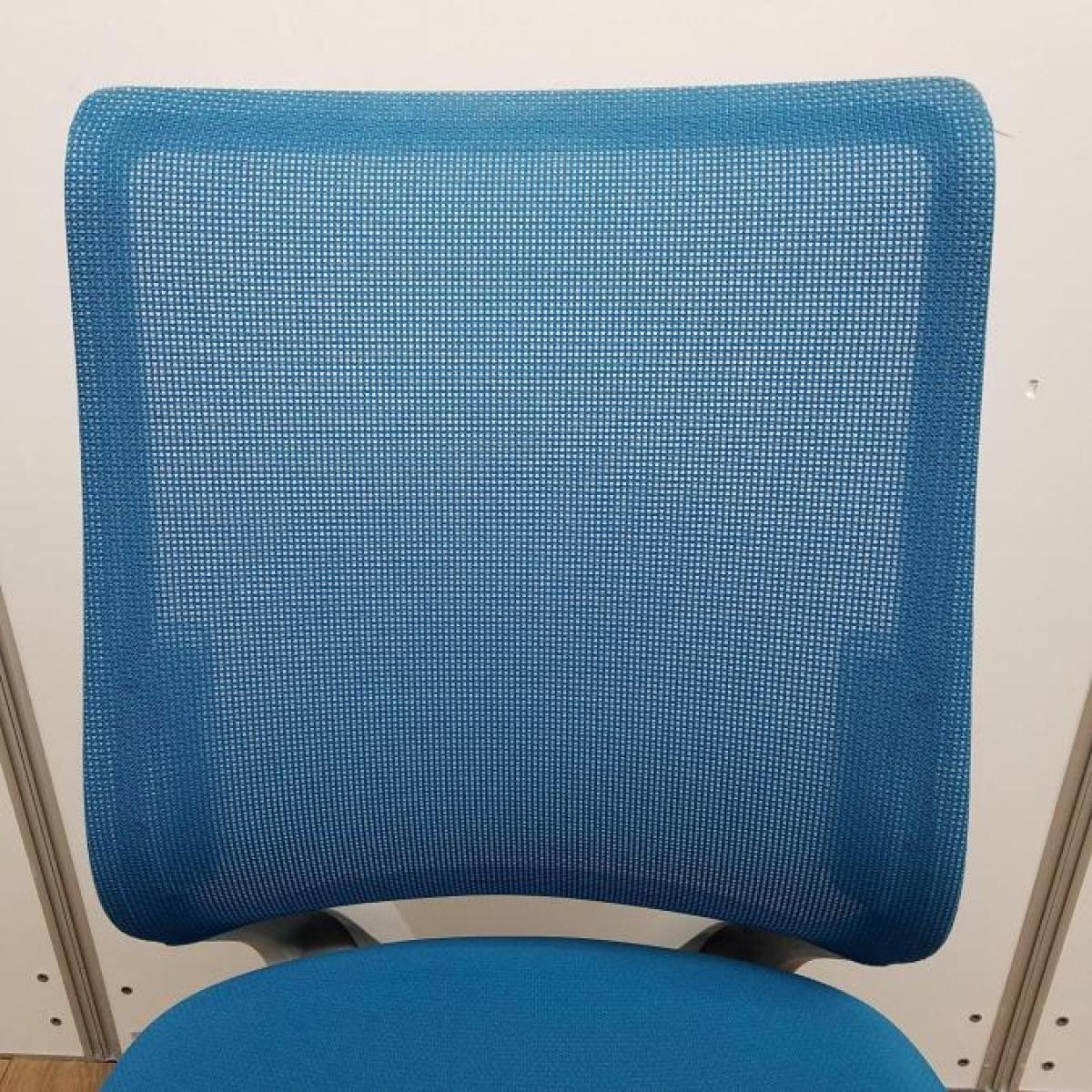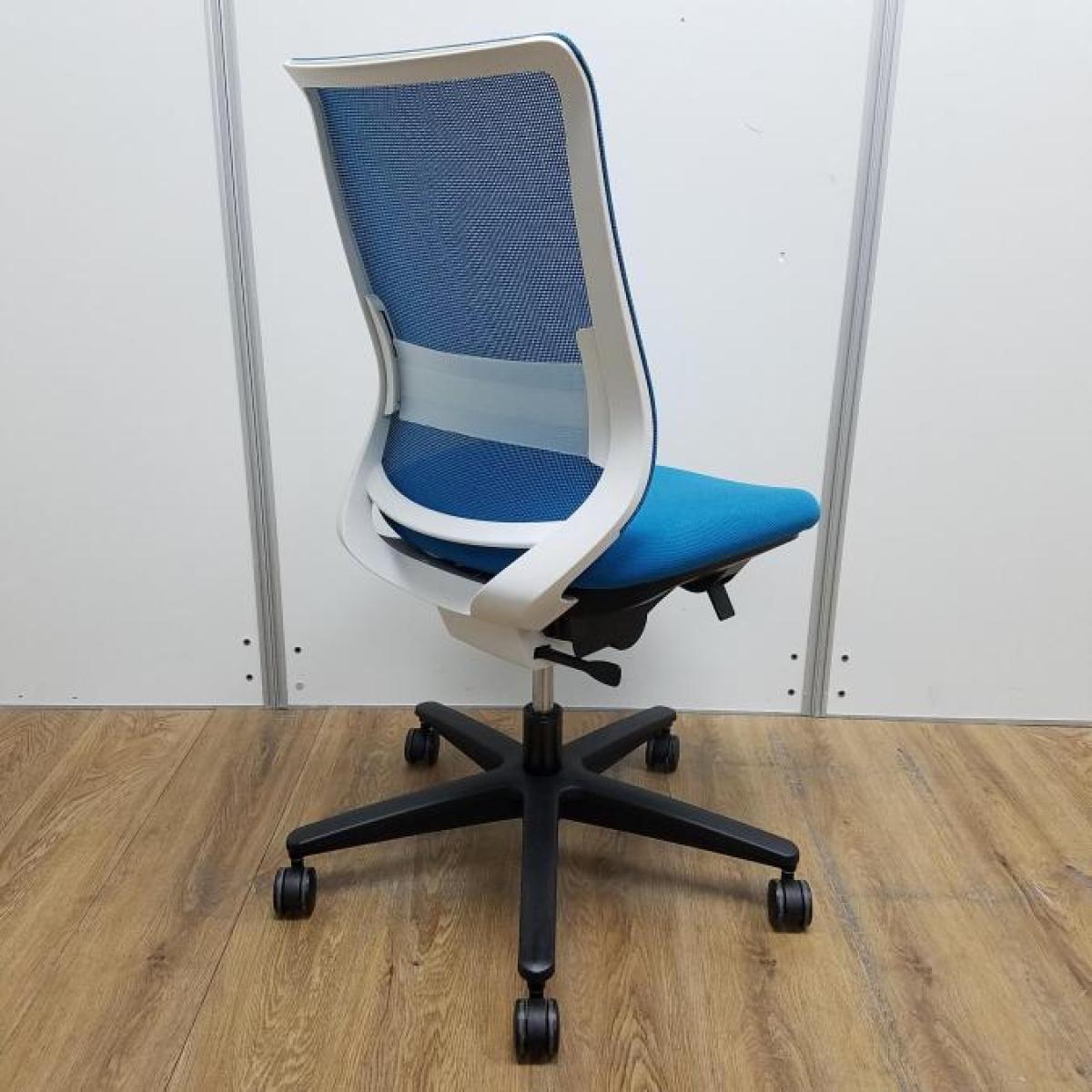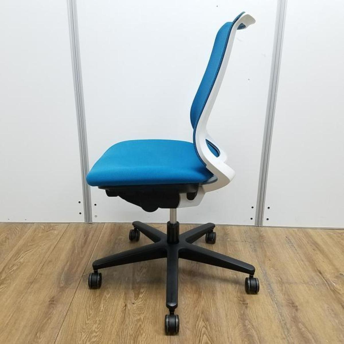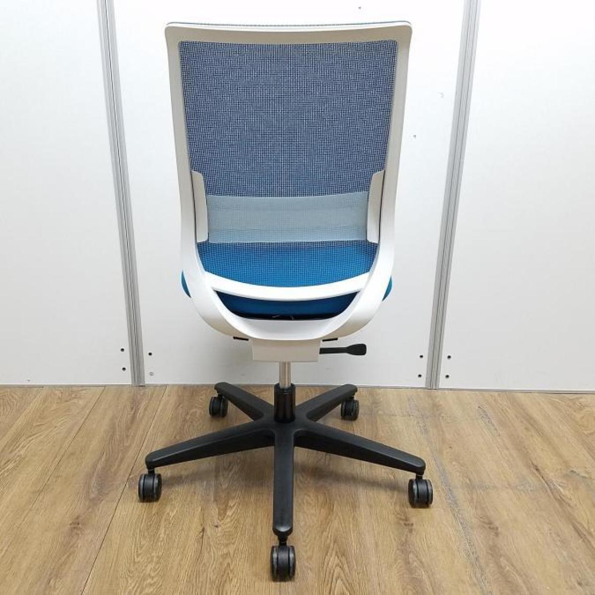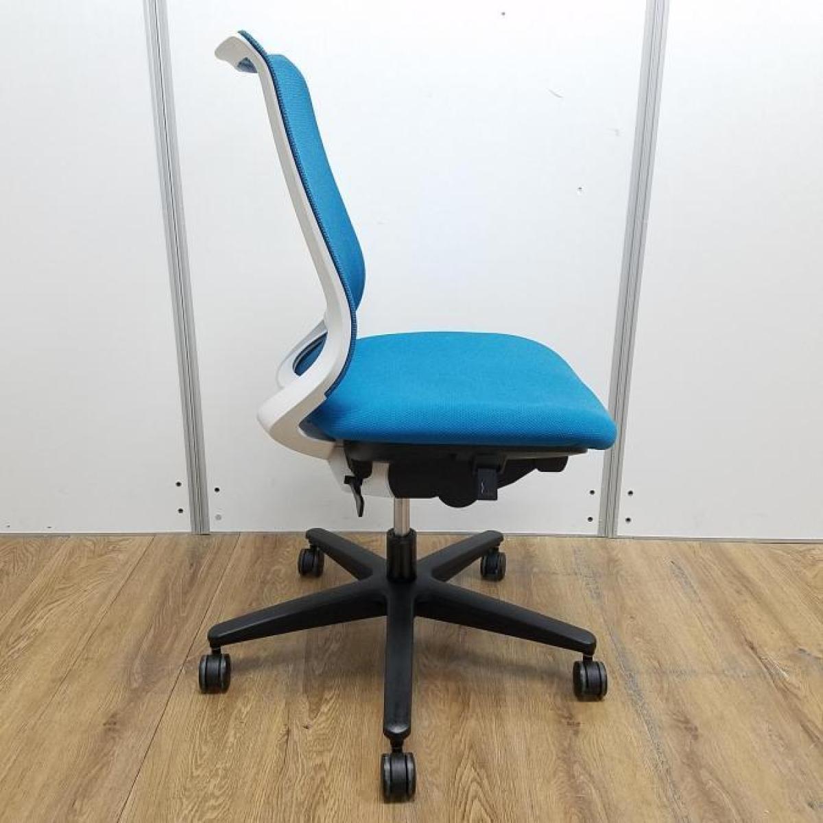 ★【商品入替のため、残り1脚限り】コクヨ製 ミトラシリーズ ターコイズブルー×ホワイトフレーム メッシュ背面 ランバーサポート付 快適な座り心地と充実機能 肘無しローバックチェア!!
