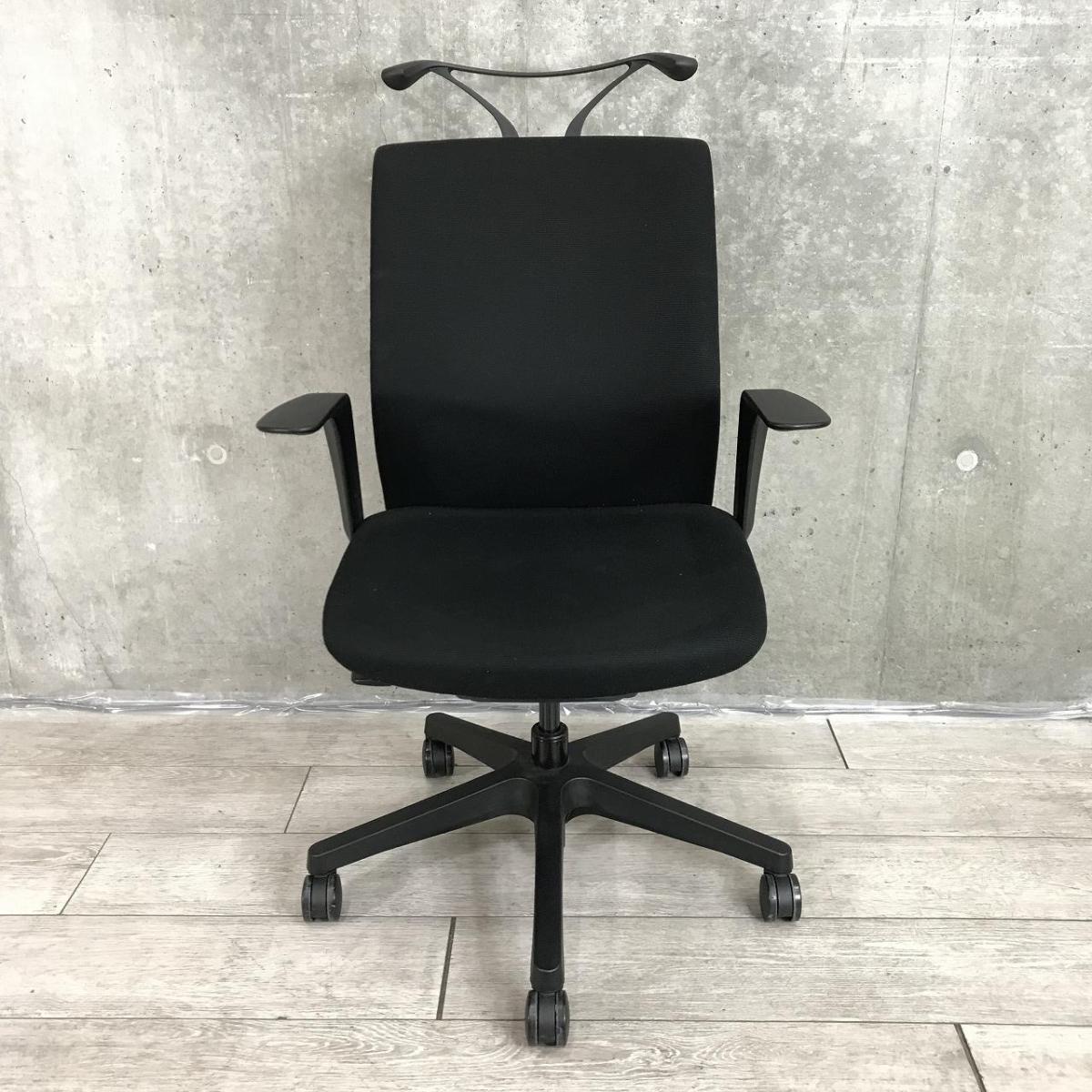 【人気のブラックカラーの肘付きOAチェア!】■オカムラ製 オムネス ●背中を包みこむような座り心地!【AD】