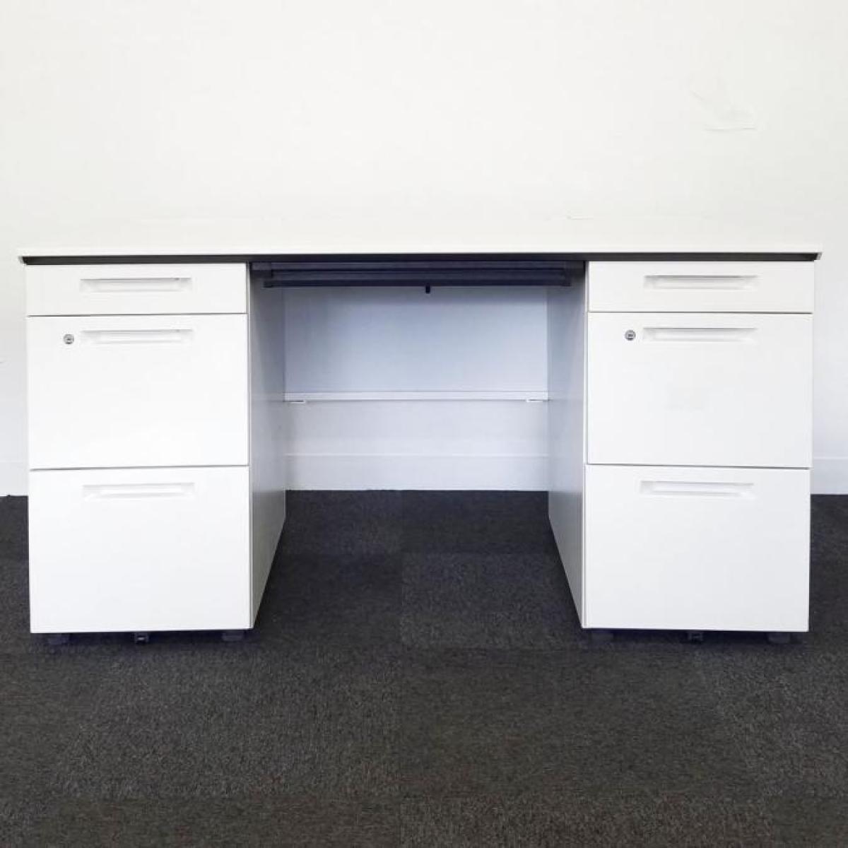 【在庫セール品・1台限定】【T11】■コクヨ(KOKUYO)製 アイエス(iS)シリーズ 両袖デスク W1400mm ■シリンダー錠 ■ホワイト【幅広いワークスペースで上長席にもオススメ! 収納スペース充実! 机上をスッキリ整理!】