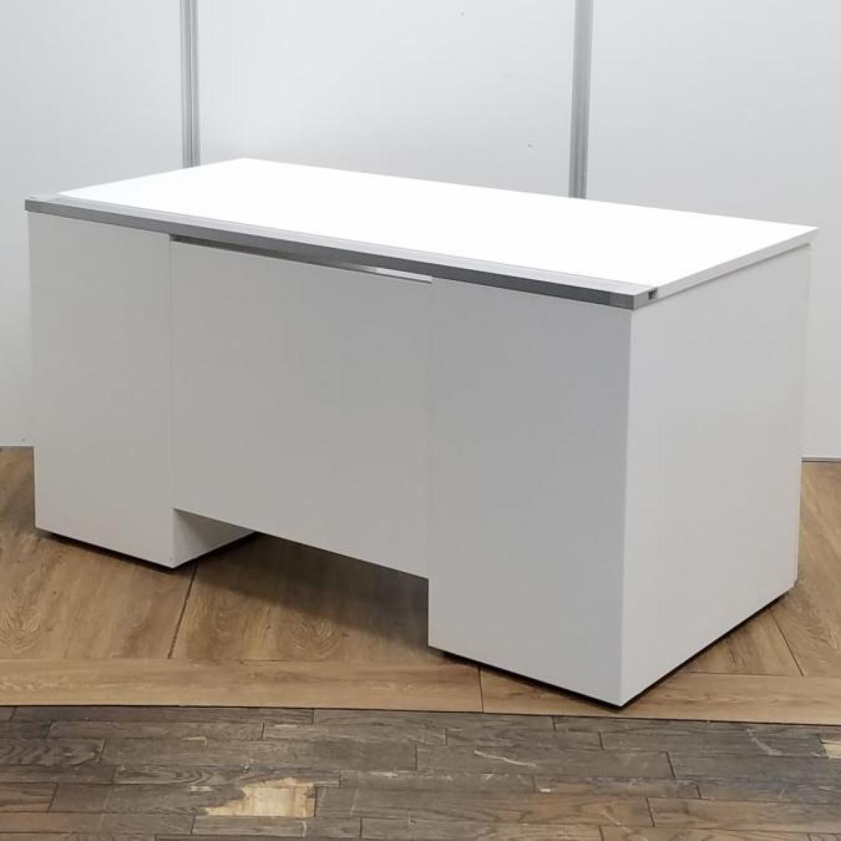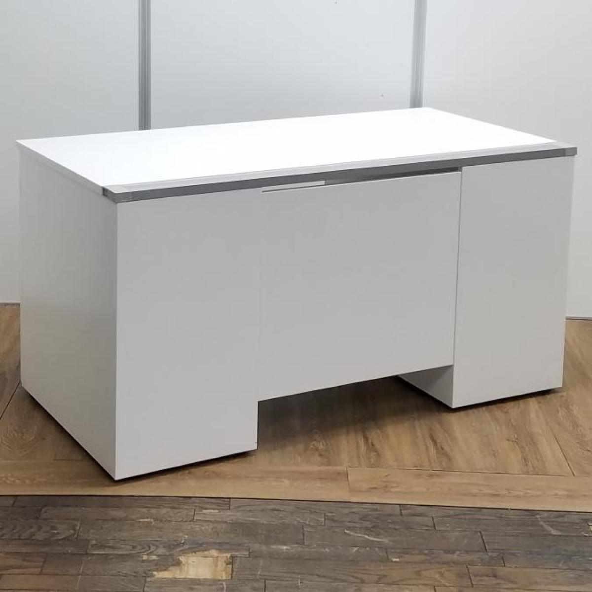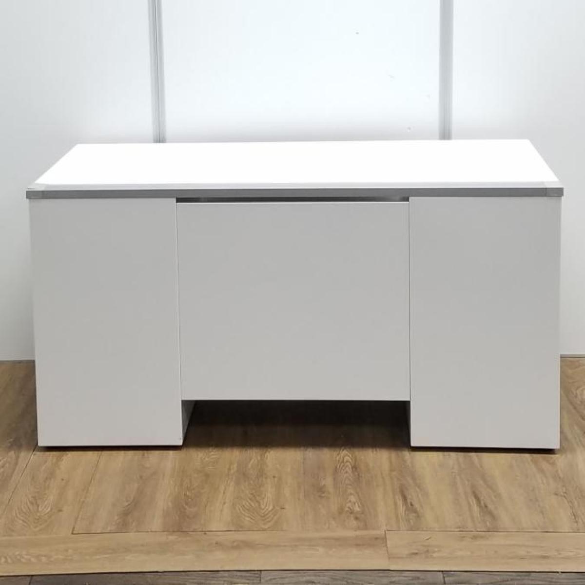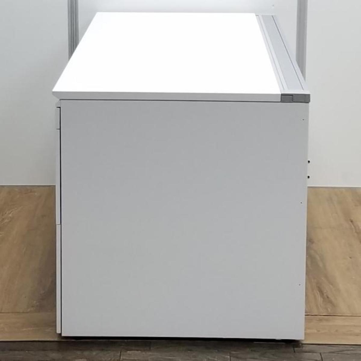 【商品入替のため、残り1台限り】クロガネ製 FUシリーズ ホワイト 左右で6段の収納引出し 広々としたワークスペースW1400サイズ・収納も充実! W1400両袖机!!- 京都東寺店