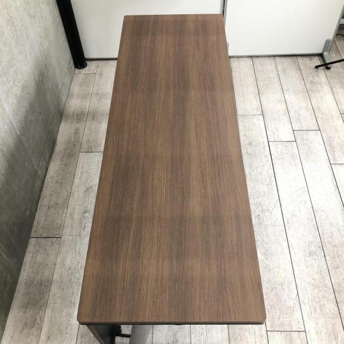 【西】【定価20万円オーバーの高級シリーズ!濃い木目調の天板が会議室に重厚感を!】■オカムラ製 エレガスタ(Elegasta) サイドスタックテーブル ■幕板付き ■天板:ネオウッドダーク【IB】- 福岡西店
