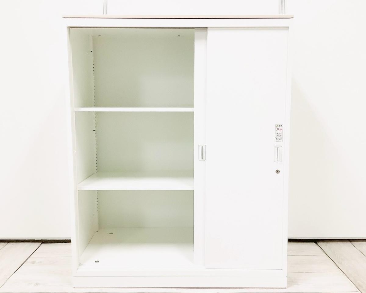 2枚引き戸書庫 オカムラ レクトライン 鍵付き シリンダー錠 ホワイト 天板無し スライド式の扉のため導線を邪魔しません