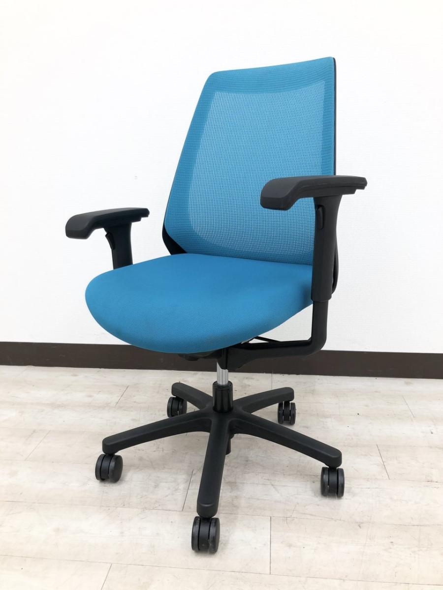 【4脚限定】【2025.05.13入荷予定】オフィスに映えるメッシュチェア イトーキ/ノナ/可動肘付 ライトブルー オフィスバスターズ 梅田本店- 大阪梅田本店