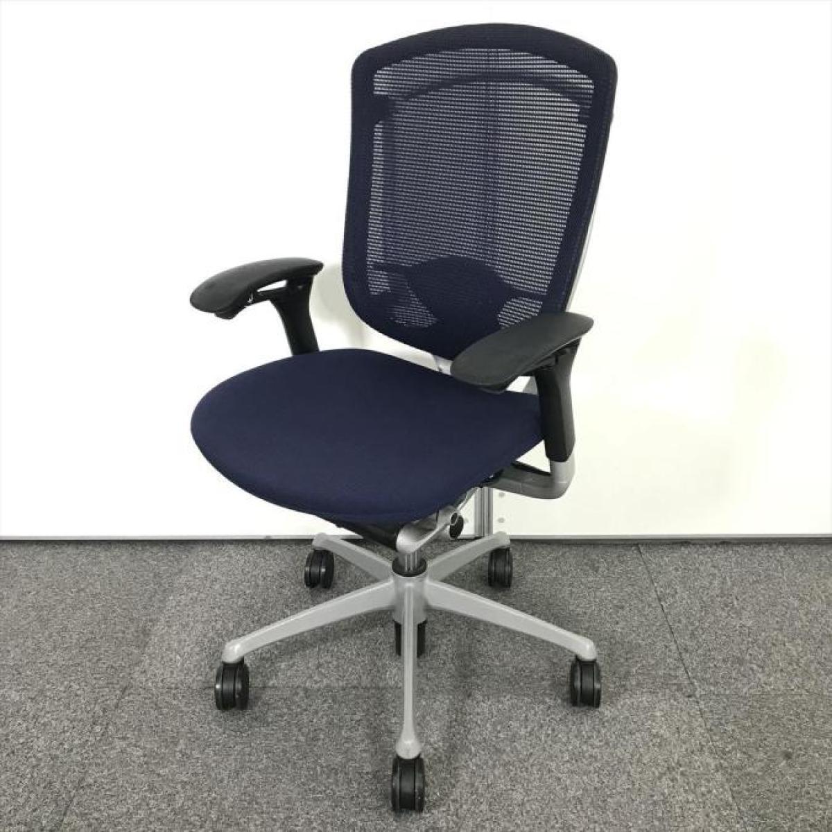 【オカムラ製の最高級チェアが残り1脚限りです!!】オフィスバスターズ 東大阪店 オカムラ製 コンテッサ シリーズ ダークブルー アジャストアーム※可動肘 背/座面メッシュ ランバー 世界で認められた革新的タスクチェア!人間工学に基づいた快適な座り心地を実現! 肘付きハイバックチェア!! 中古 外部倉庫品