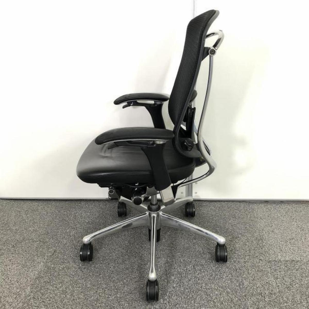 入替セール品【オカムラの最高峰メッシュチェア・めずらしいレザータイプ!】■オカムラ コンテッサ ハイバック肘付き 座面レザータイプ ■背面メッシュ 可動肘 ランバーサポート ■ブラック- なんば日本橋店