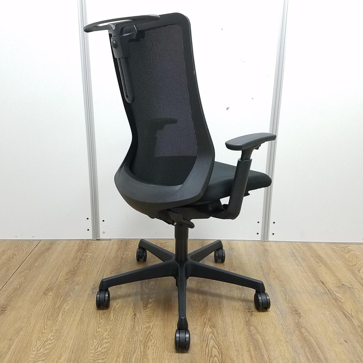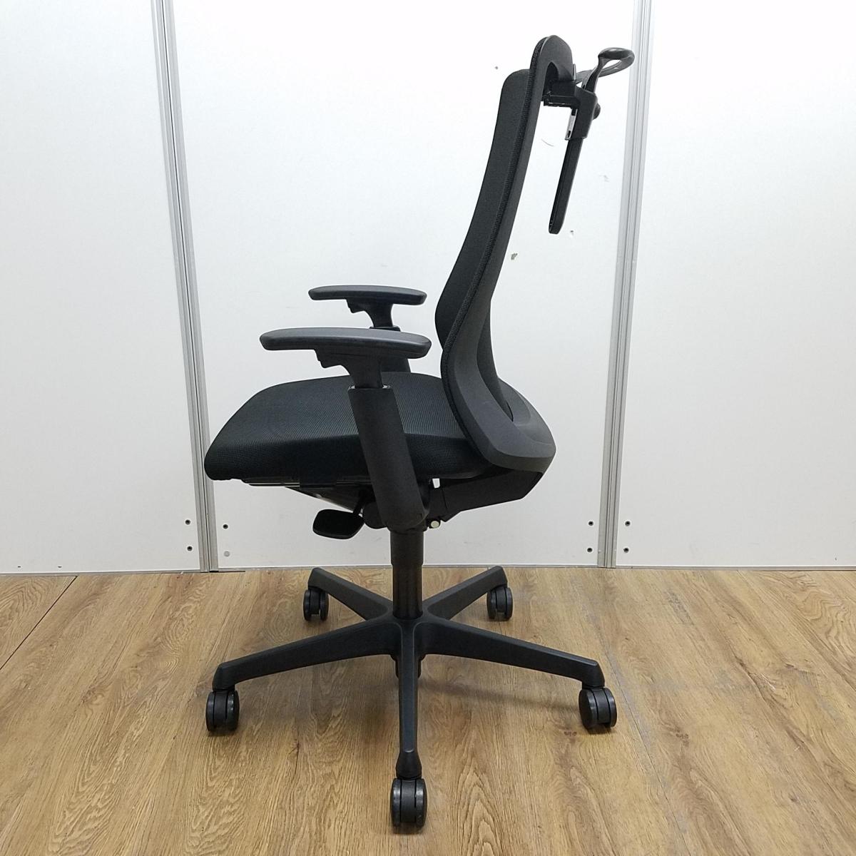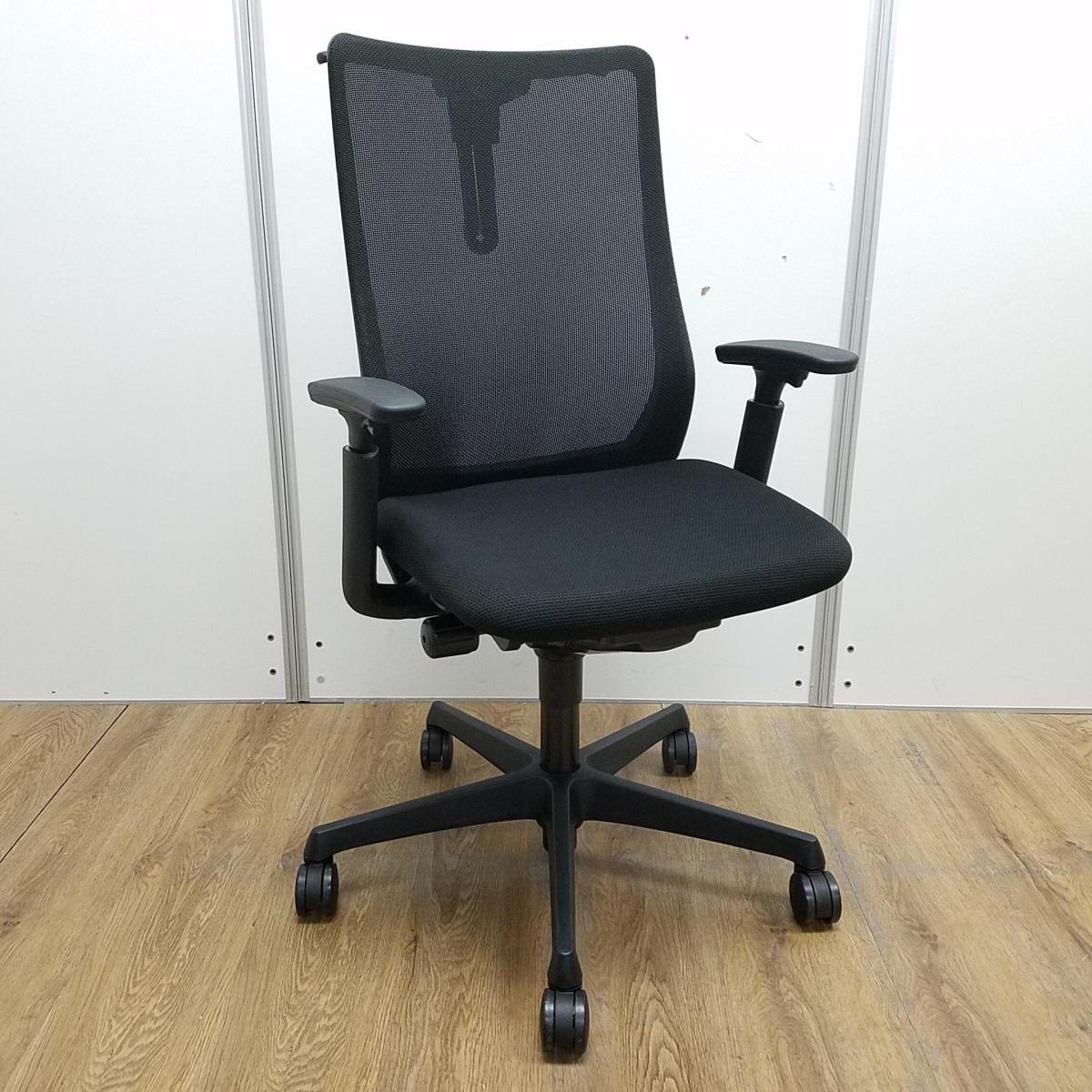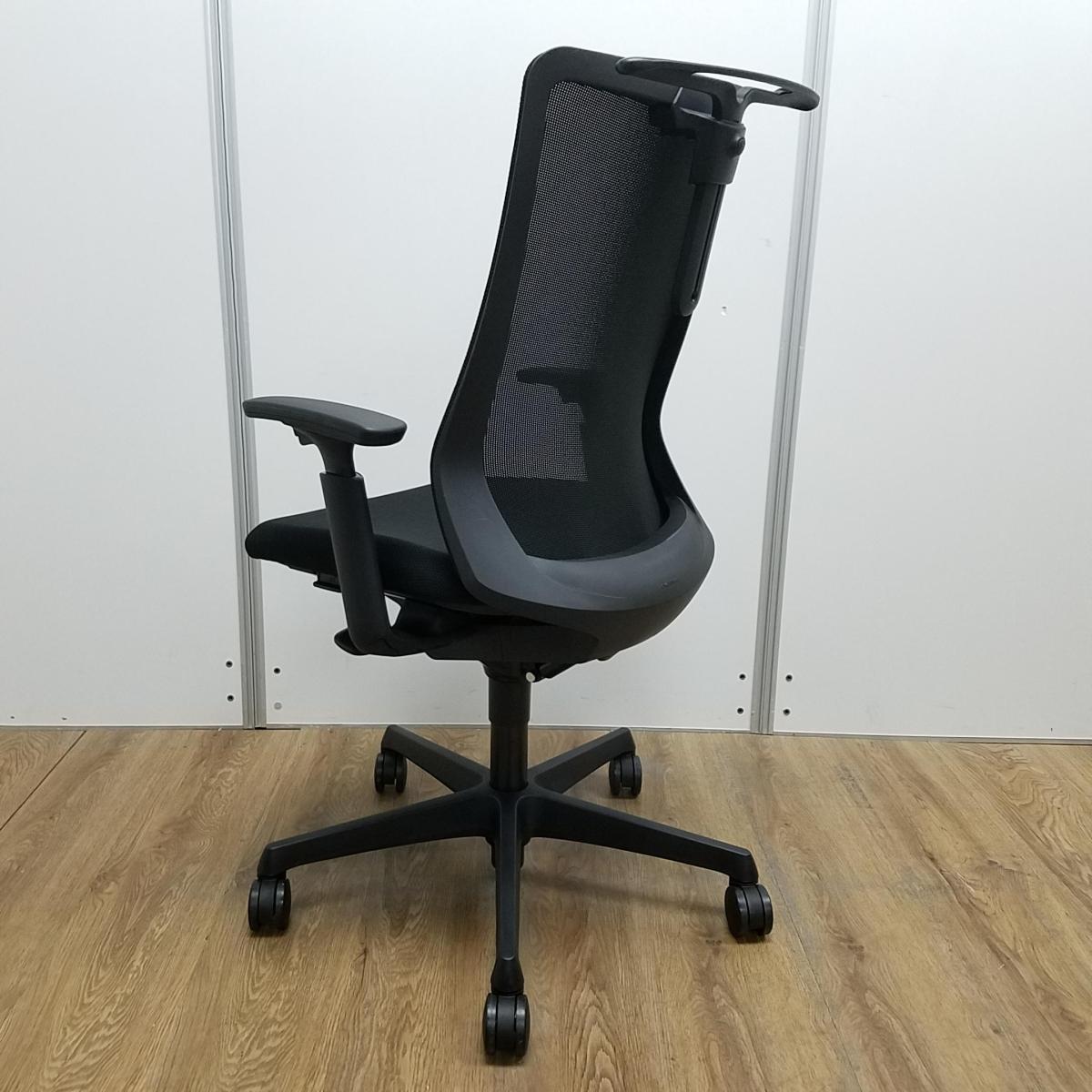 オカムラ製 フルーエントシリーズ 人気のブラックカラー アジャストアーム※可動肘 コートハンガー メッシュ 肘付きハイバックチェア!!- 京都東寺店