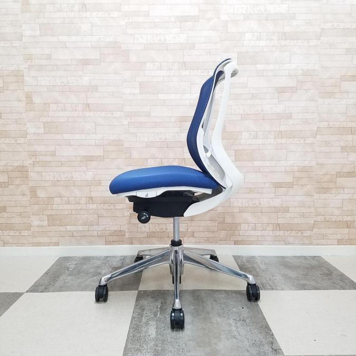 【2024年製のため、使用1年未満!】■オカムラ製 シルフィー ローバック肘無し ■背面メッシュ ■ミディアムブルー×ホワイトシェル【極上品】- 大阪・堺店
