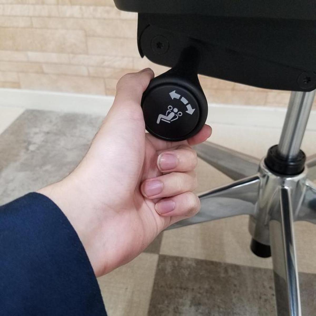 - 座面右下のダイヤル操作で、リクライニングの強弱調整が行えます。これまでのダイヤル式よりも、少ない回転数で、最弱?最強の調整が可能です。