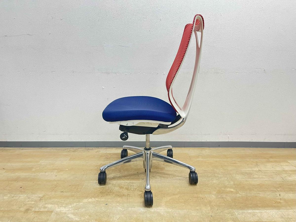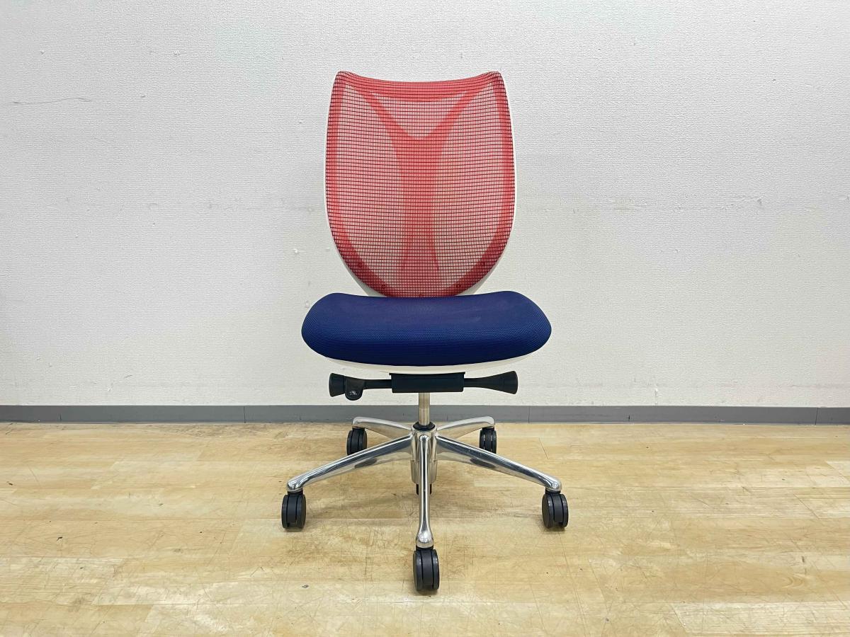 【人間工学から生まれた最先端のワーキングチェア!】■オカムラ サブリナチェア 肘掛け無 背:レッド / 座:ダークブルー ■流れるような美しいフォルム!姿勢に心地よくフィット!【K10】