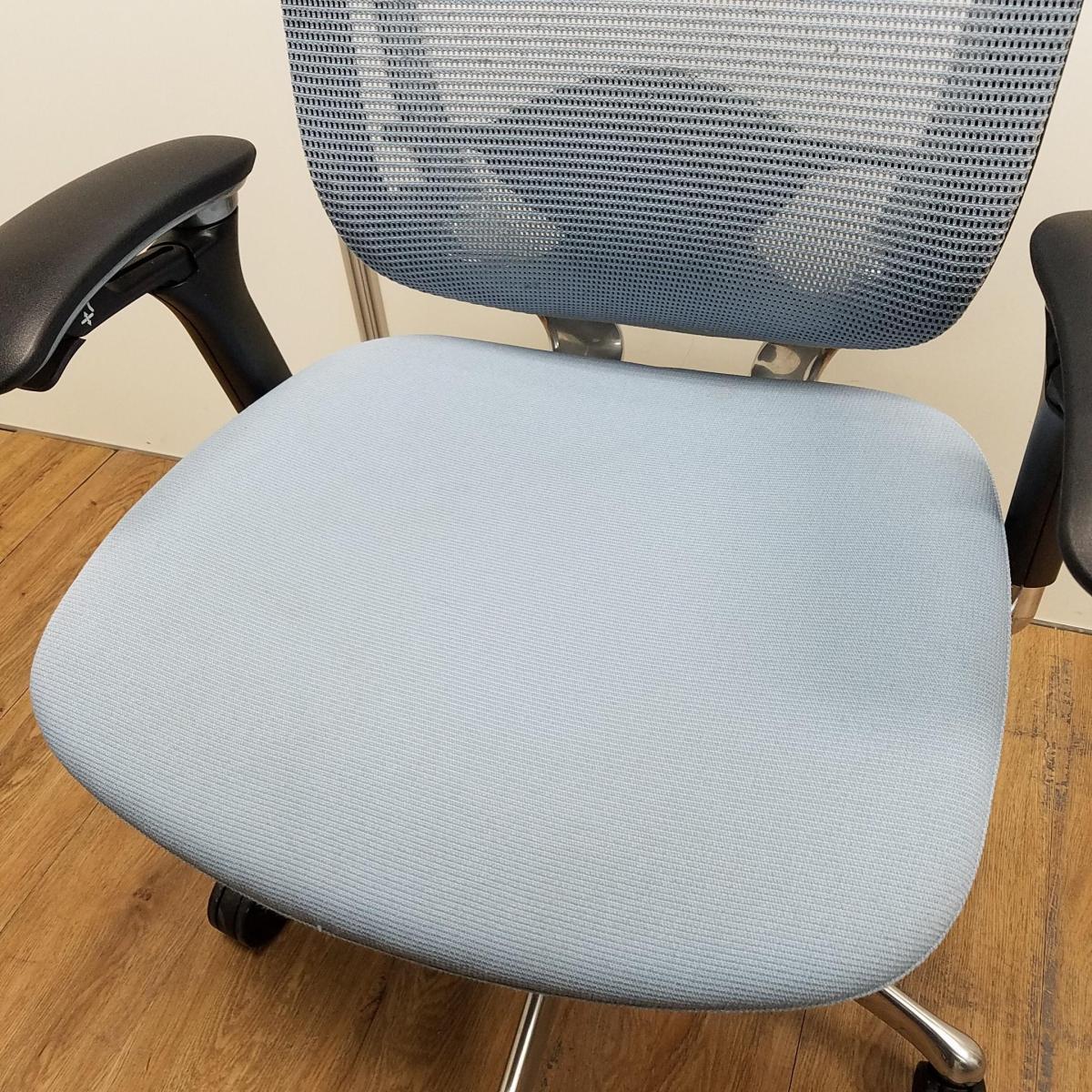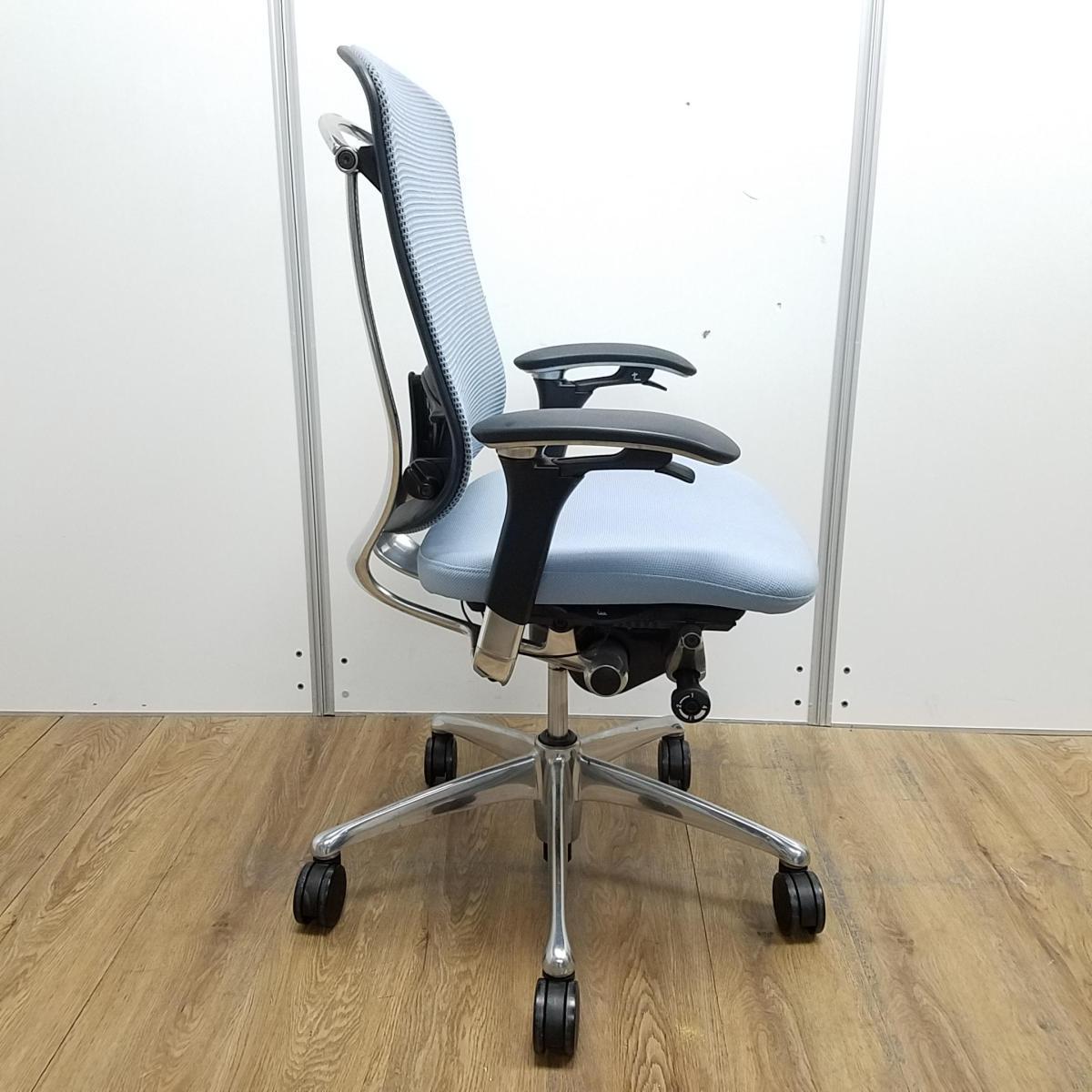 【世界で認められた革新的タスクチェア!人間工学に基づいた快適な座り心地を実現!】■オカムラ製(okamura) コンテッサ (Contessa) ハイバック肘付き ■ライトブルー ■メッシュ ランバーサポート付 ■可動肘【状態良好品!】- つくば店