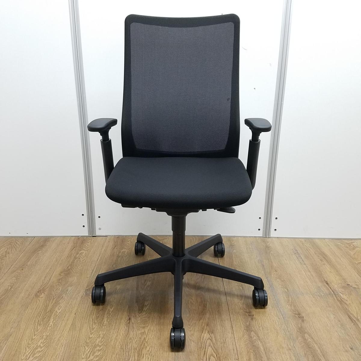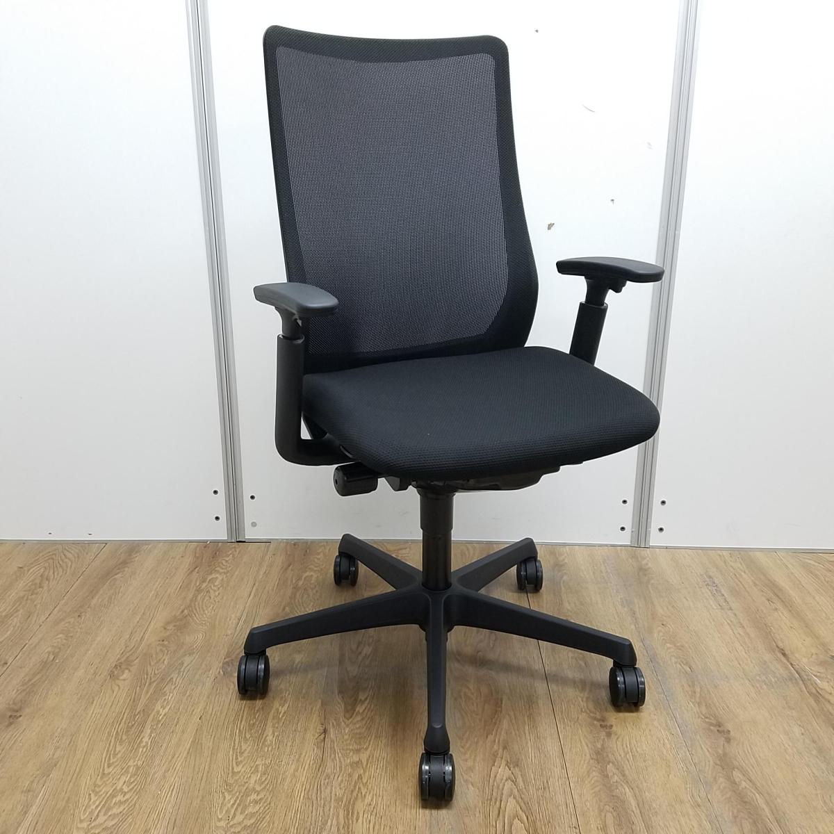 オカムラ製 フルーエントシリーズ 人気のブラックカラー アジャストアーム※可動肘 メッシュ 肘付きハイバックチェア!!- 京都東寺店