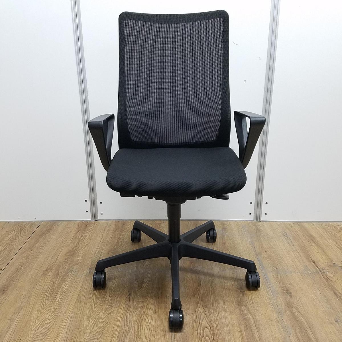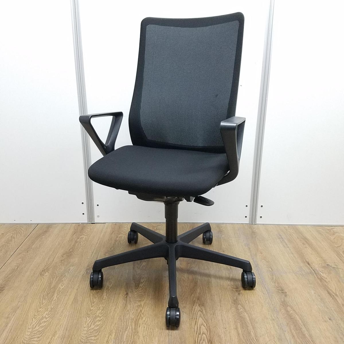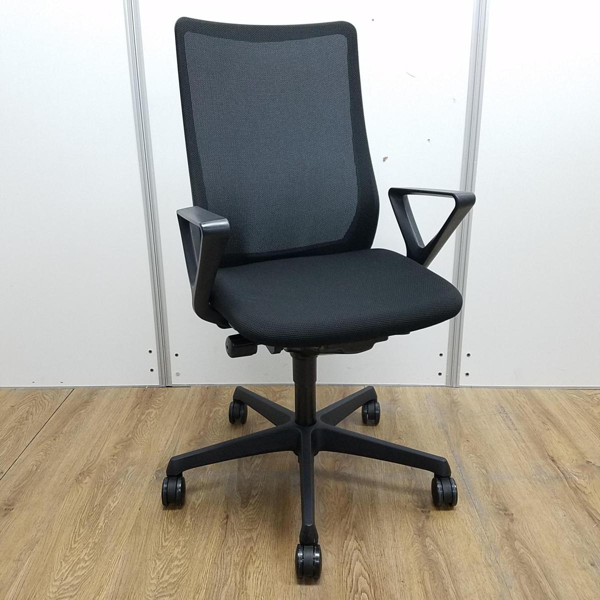 オカムラ製 フルーエントシリーズ 人気のブラックカラー デザインアーム※固定肘肘 メッシュ 肘付きハイバックチェア!!- 京都東寺店