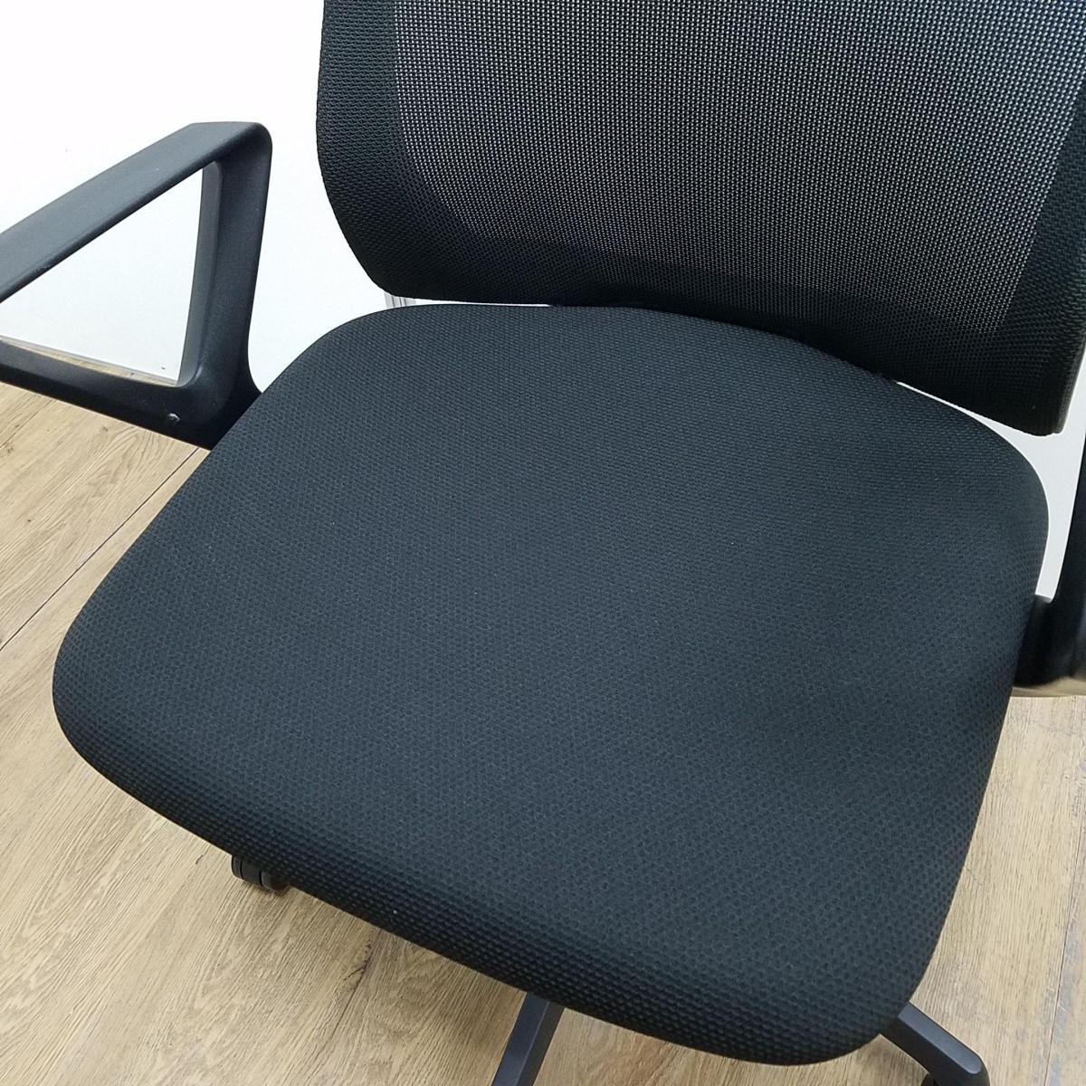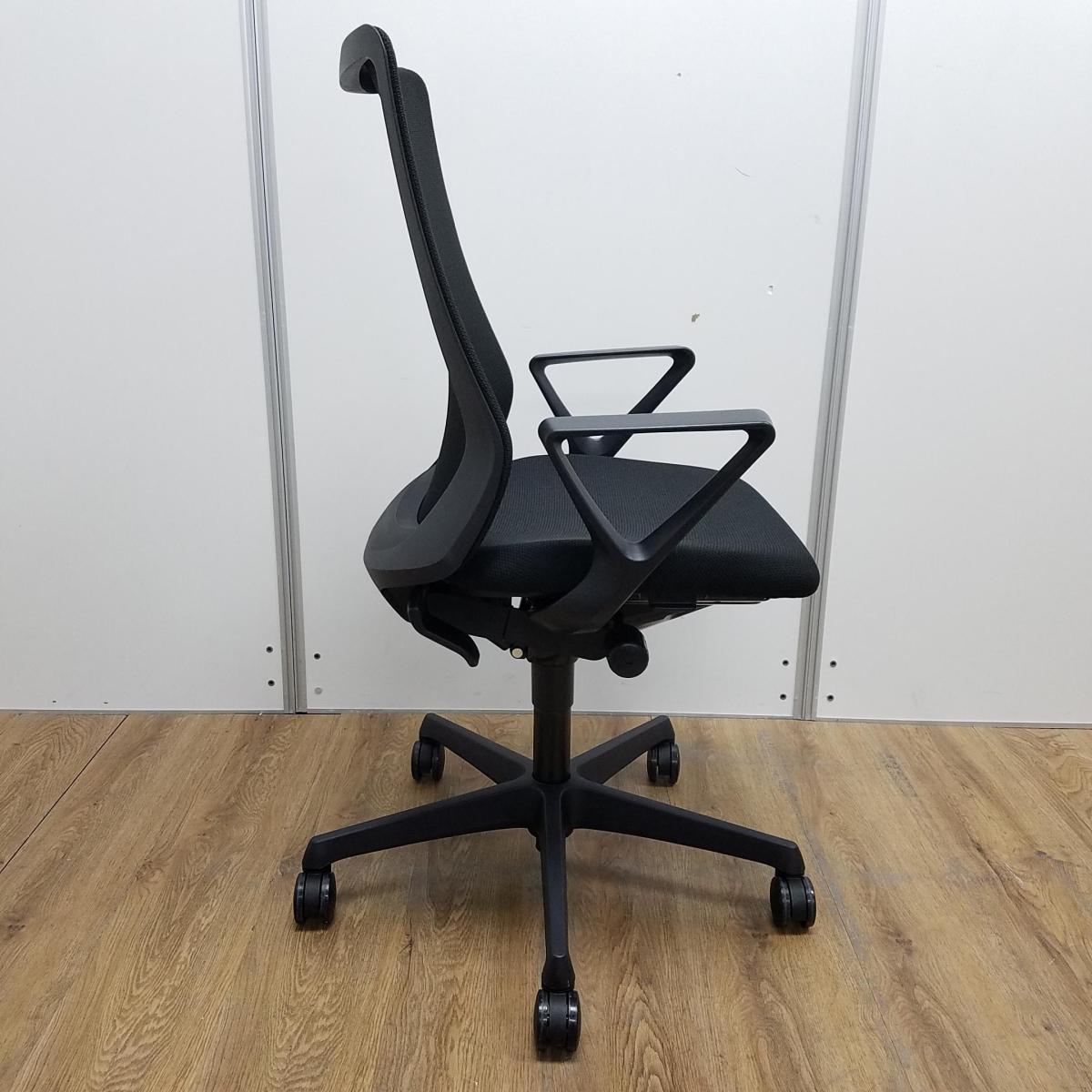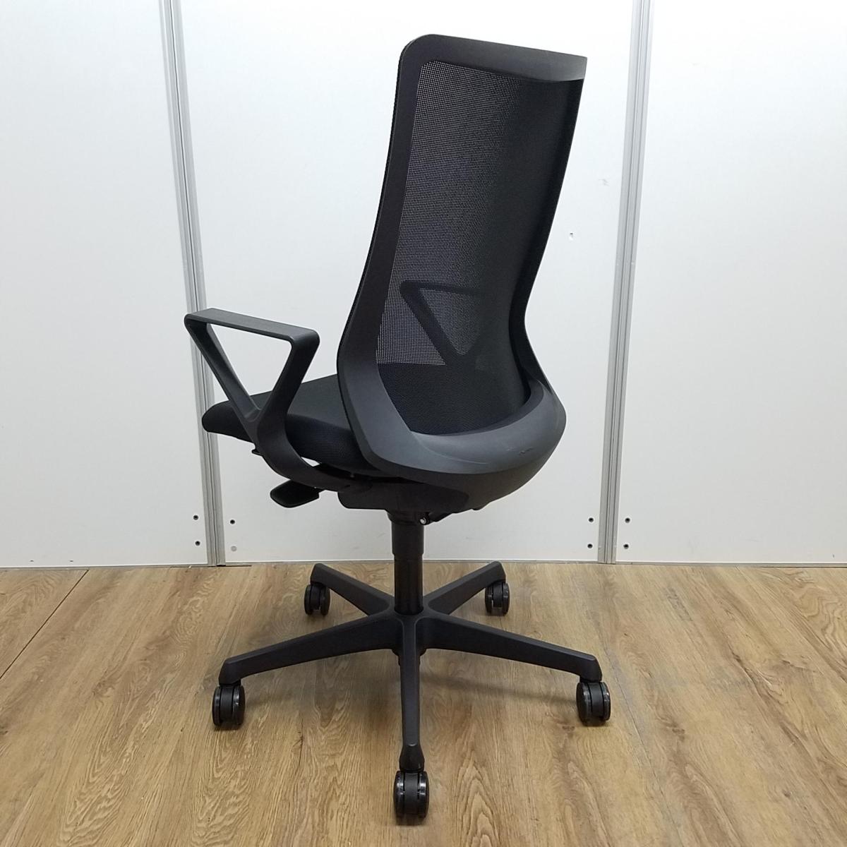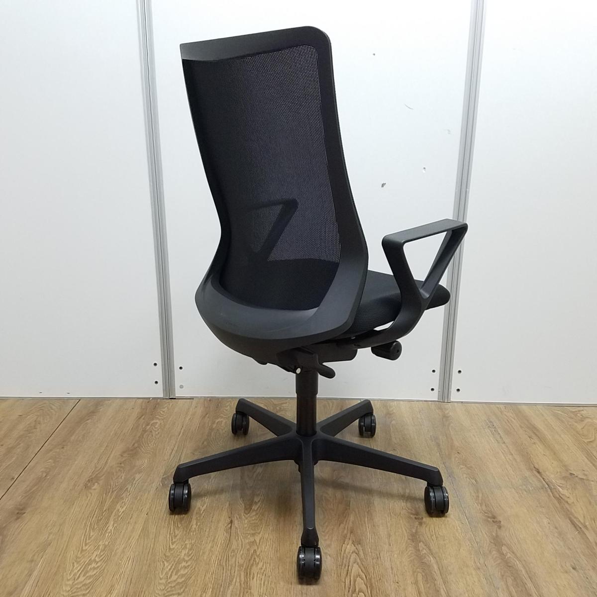 オカムラ製 フルーエントシリーズ 人気のブラックカラー デザインアーム※固定肘肘 メッシュ 肘付きハイバックチェア!!- 京都東寺店