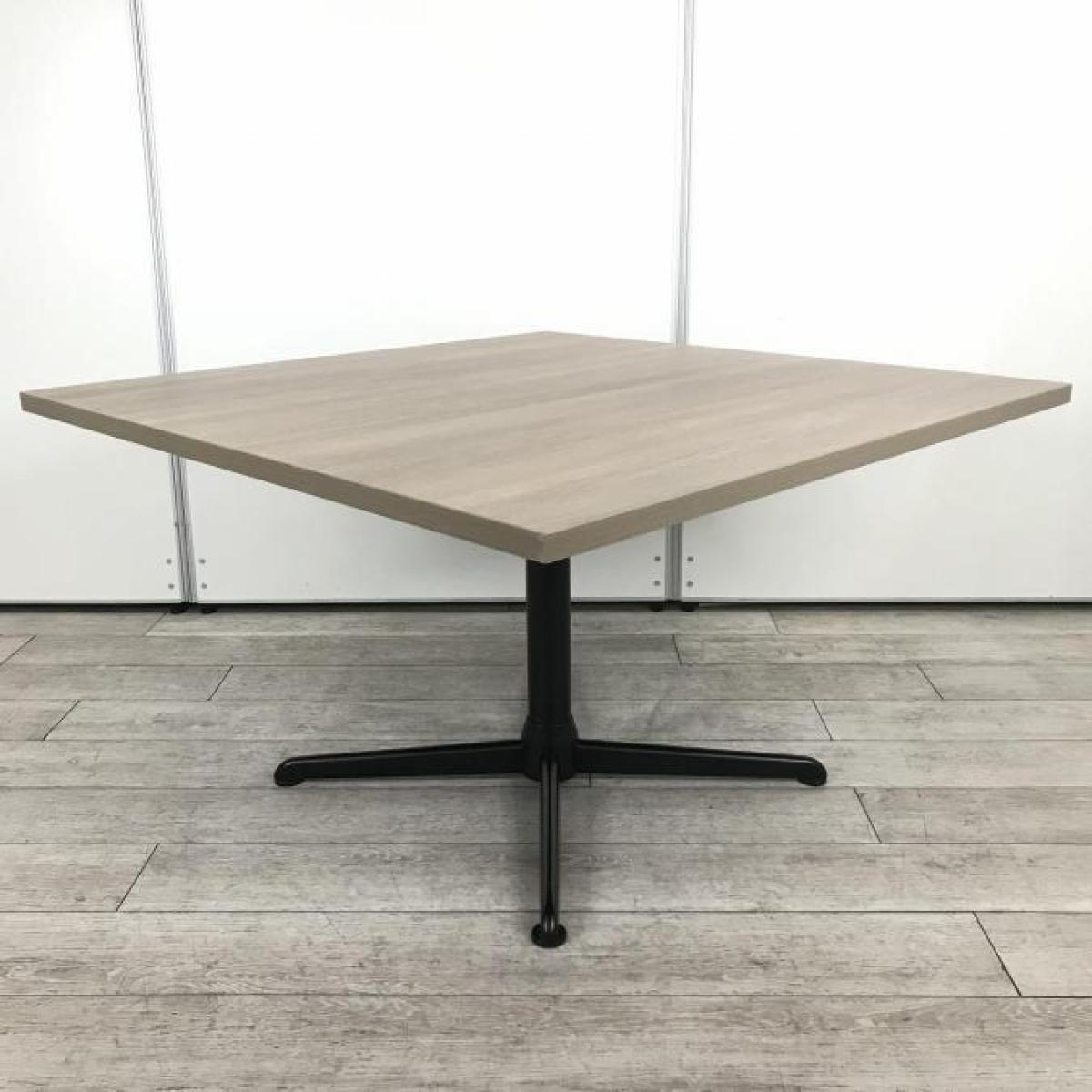 【いま流行りの木目デザイン!】【リフレッシュスペースにオススメ!】 ■カフェテーブル 角テーブル ミーティングテーブル ■W1200×D1200㎜ ■木目ナチュラル ■脚:単柱脚ブラック- 在庫数