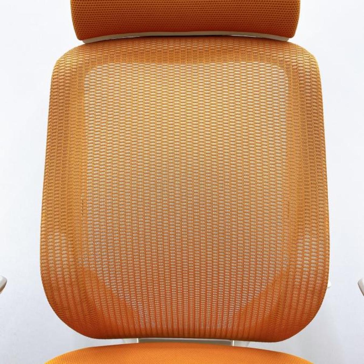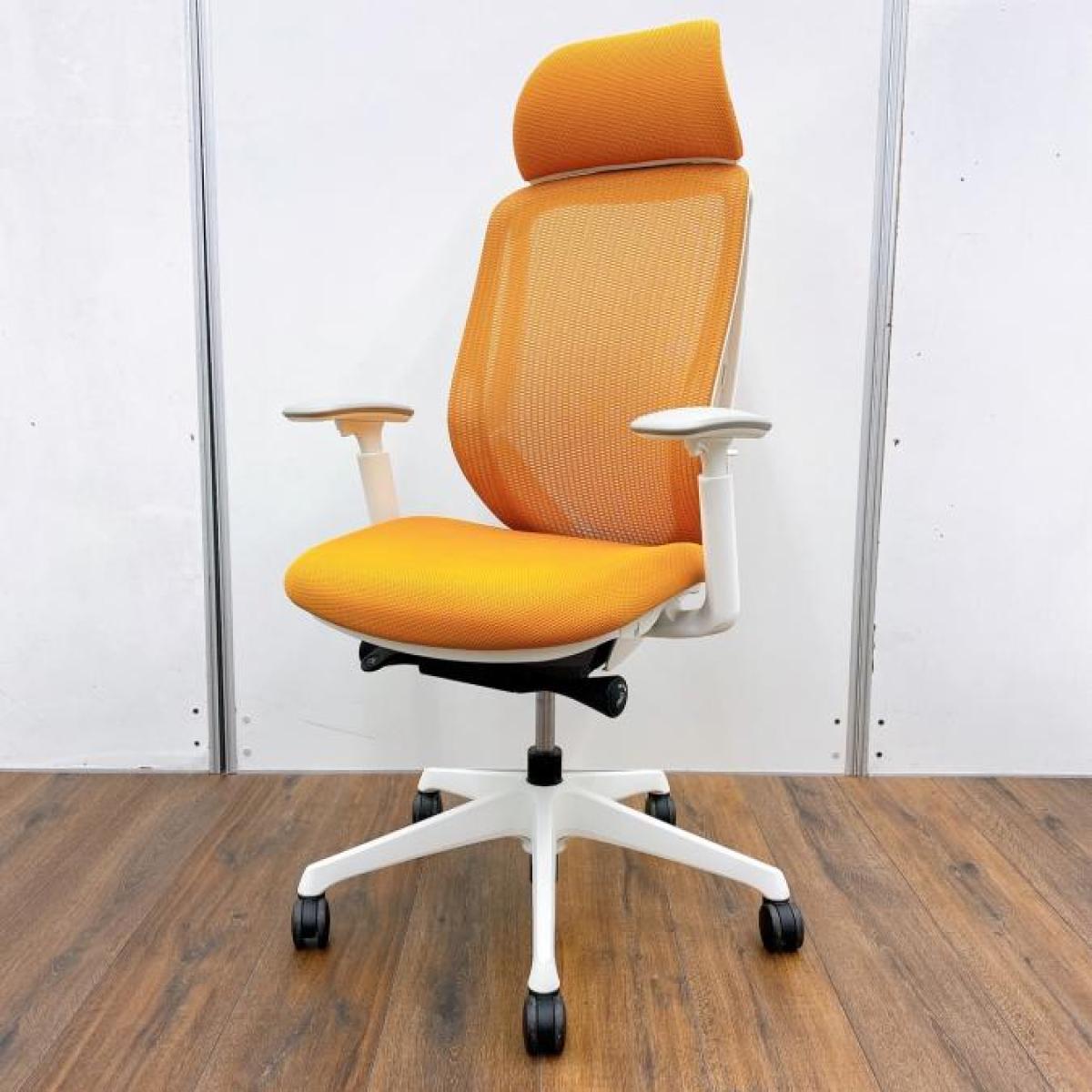 【人気のシルフィチェアヘッドレスト付き入荷!】◆オカムラ/シルフィ/オレンジ◆エクストラハイバック/ホワイトフレーム◆前傾チルト機能付き◆- 品川・三田店