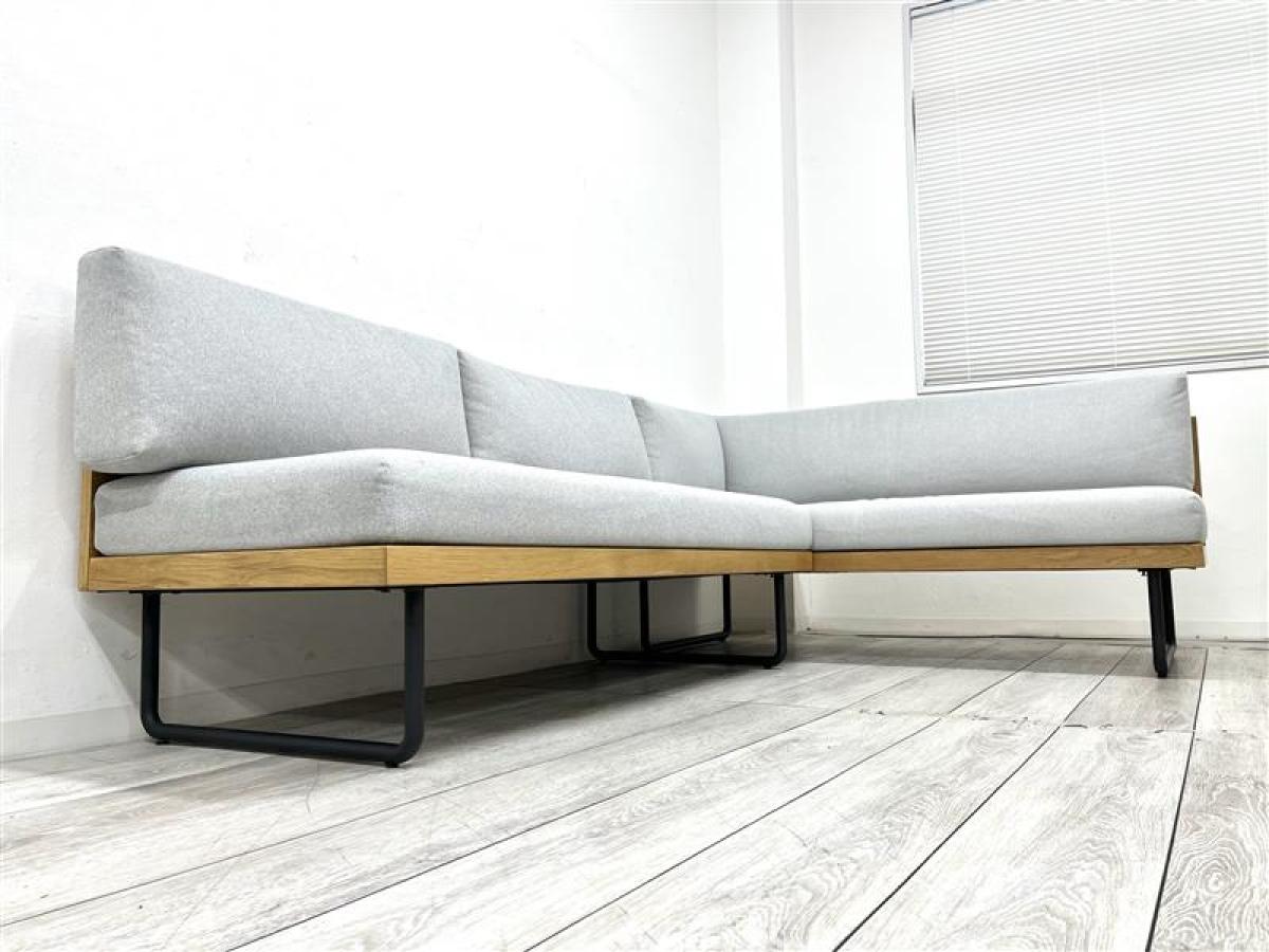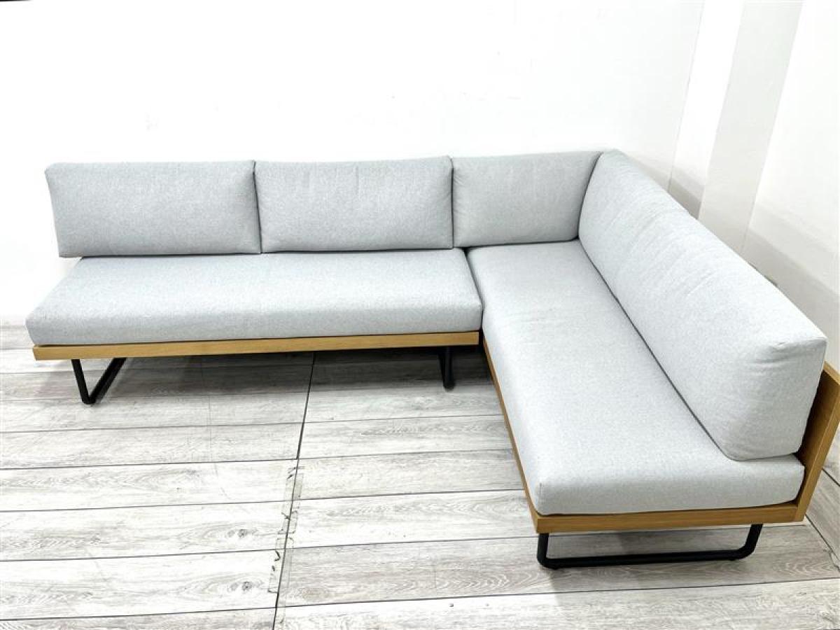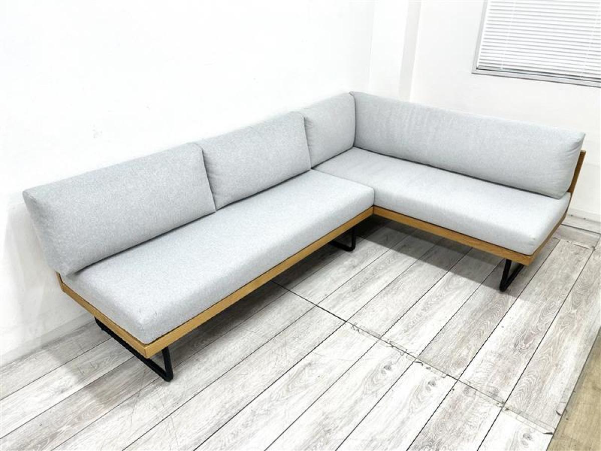【定価約25万円】【木目調のお洒落なL字ソファ入荷!】■ノーウェアライクホーム/L字ソファ ナチュラル枠/クッショングレー- 在庫数