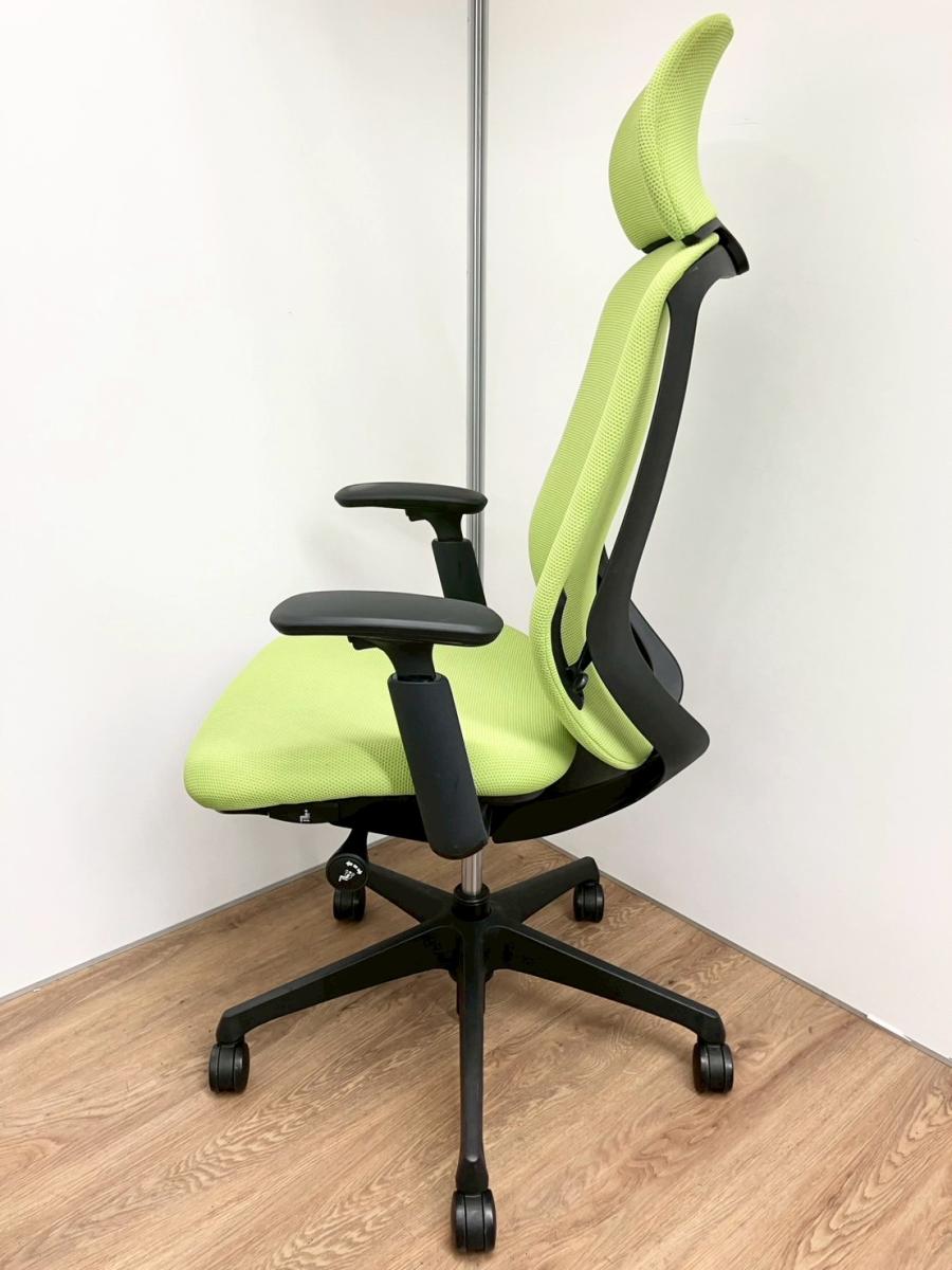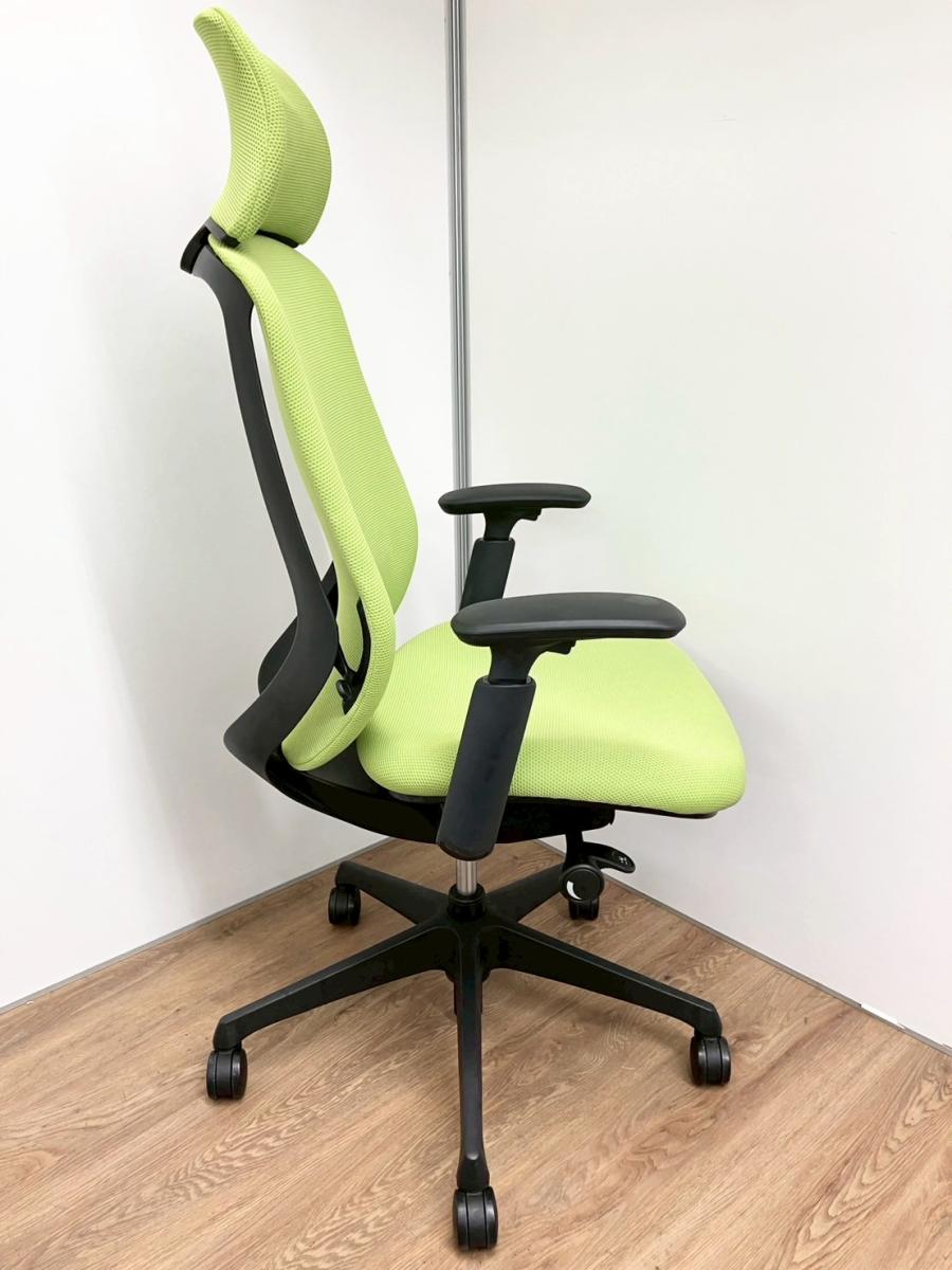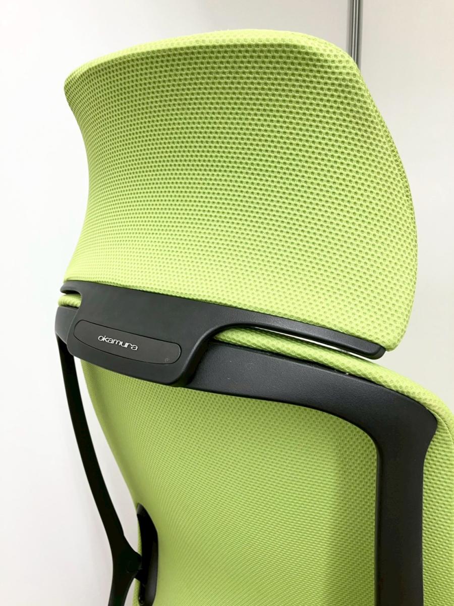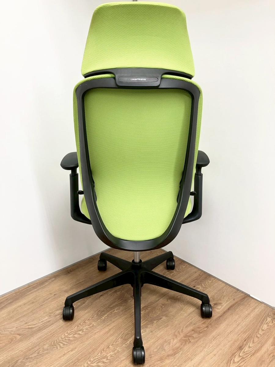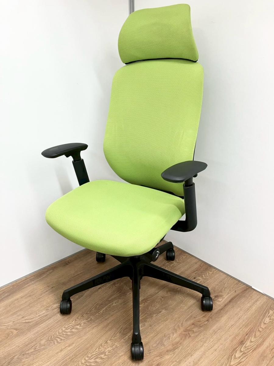 【人気のヘッドレスト付!集中作業にもオススメのワークヴェール付!】■オカムラ シルフィーチェア 可動肘付 ライムグリーン エクストラハイバック ■背のカーブを変えられる!新感覚のオフィスシーティング!【Okamrua Sylphy】★
