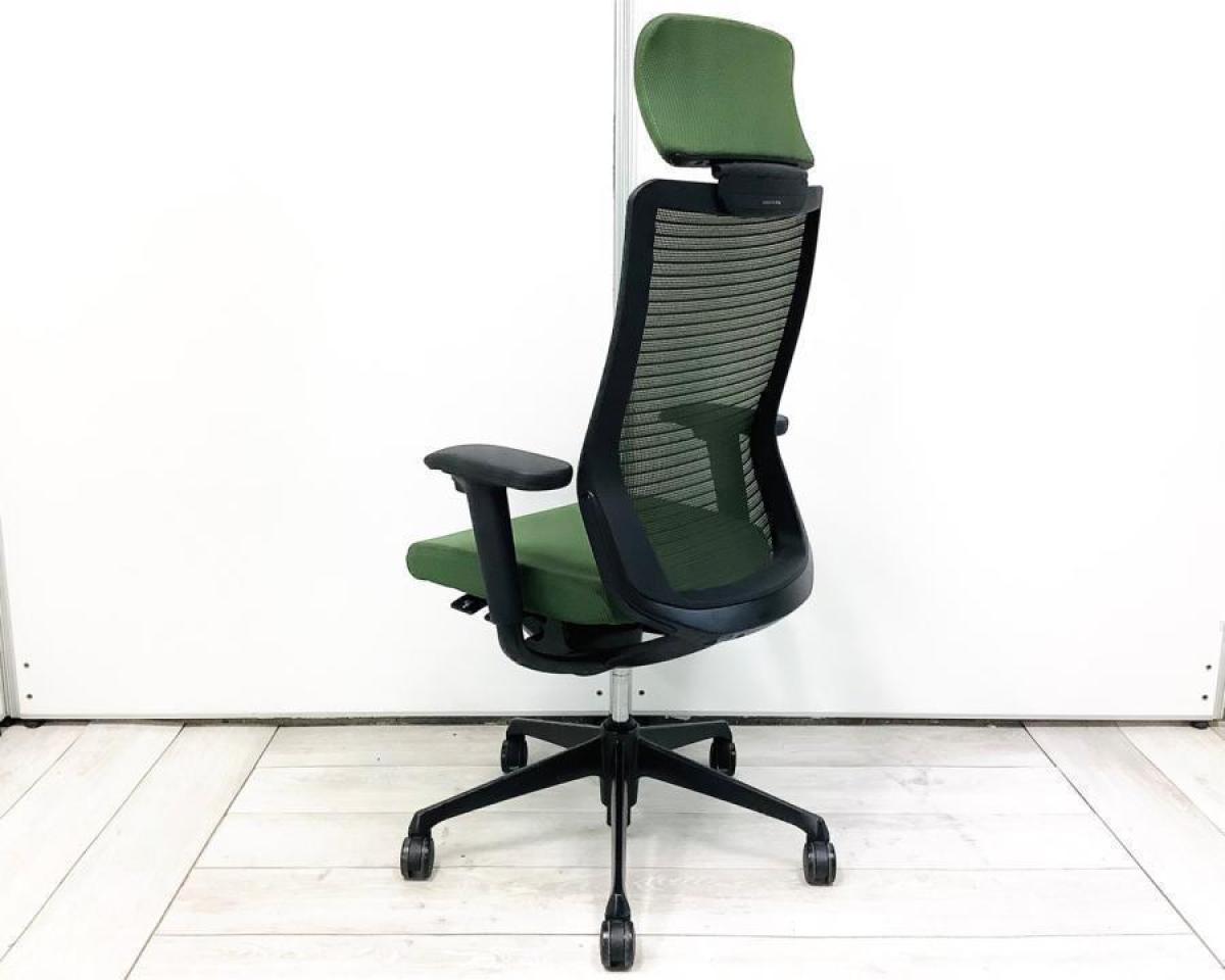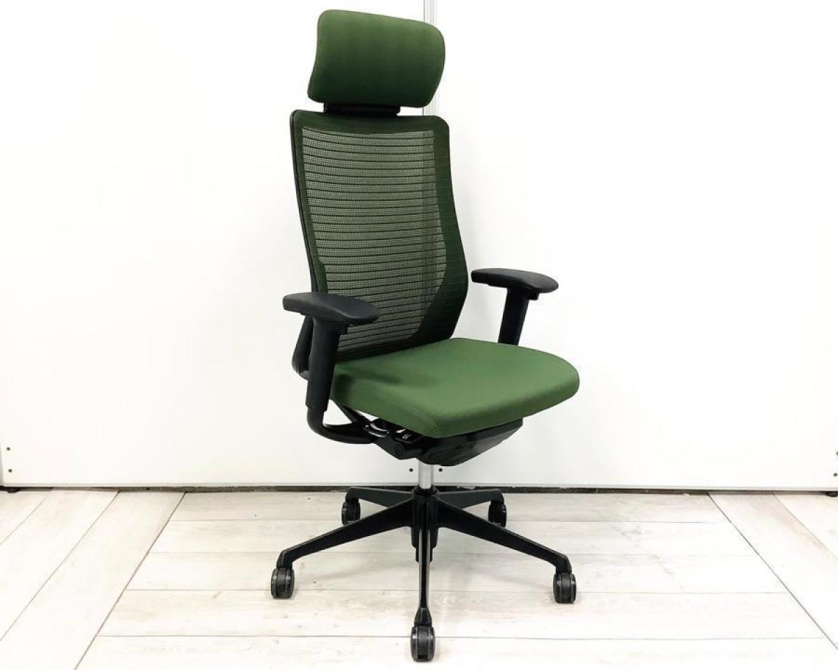 【ヘッドレスト付きならコレ!厚めのクッションで快適な座り心地を実現!】■オカムラ(okamura)製 コーラル(choral)チェア ■エクストラハイバック ■ヘッドレスト付き ■背メッシュ ■グリーン ■デザインアーム〈岐阜・愛知・三重・静岡・福井〉