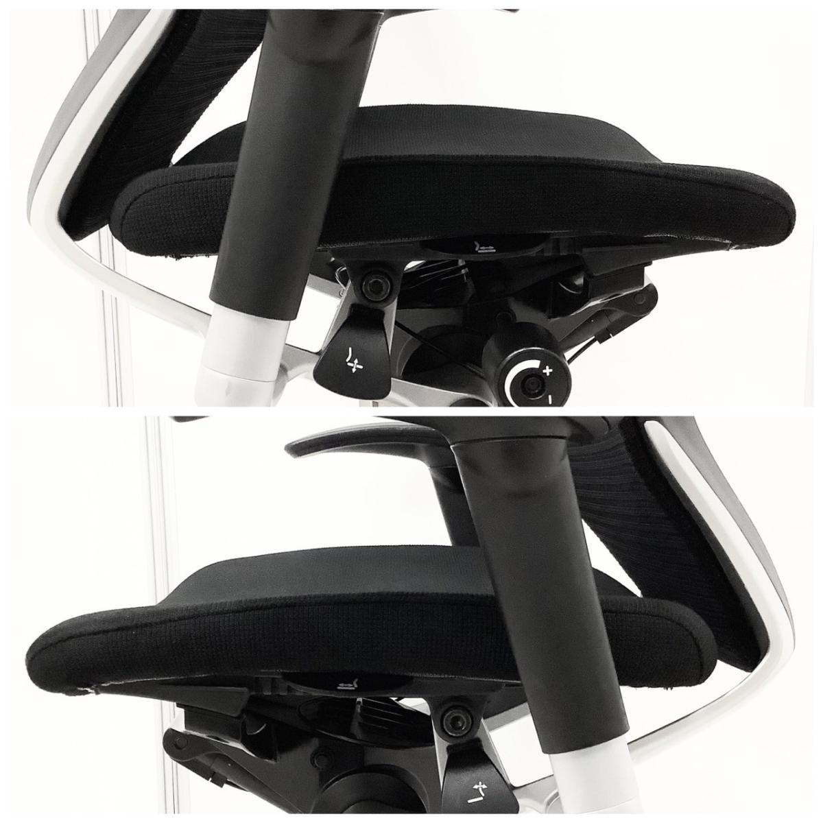 もちろん座り心地もコンテッサの直系ですから快適です。座面の素材はクッションとメッシュの2タイプあります。私、個人的には座面の中心部分でも外側でもテンションが変わらないクッション素材が、足を閉じても開いても快適なので推しです!"
