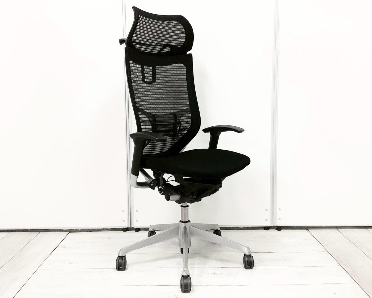 【長時間の着座でも疲れにくい!ベストなポジションが得られる先進設計!】■オカムラ バロンチェア 肘付 ブラック ハイバック シルバーフレーム ■良い椅子は腰を守る投資です!【Okamura Baron】