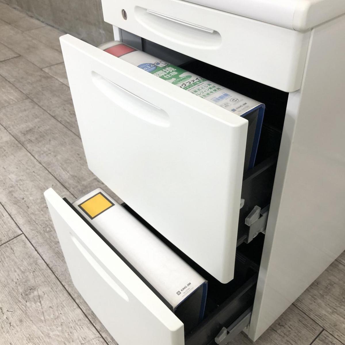 【定価約10万円】【収納と作業スペースを同時に確保できる3段脇机!】■オカムラ(okamura)製 SD-Vシリーズ 脇机3段 H700mm ■色:ホワイト ■シリンダー錠【弊社使用欄:A01046245】