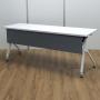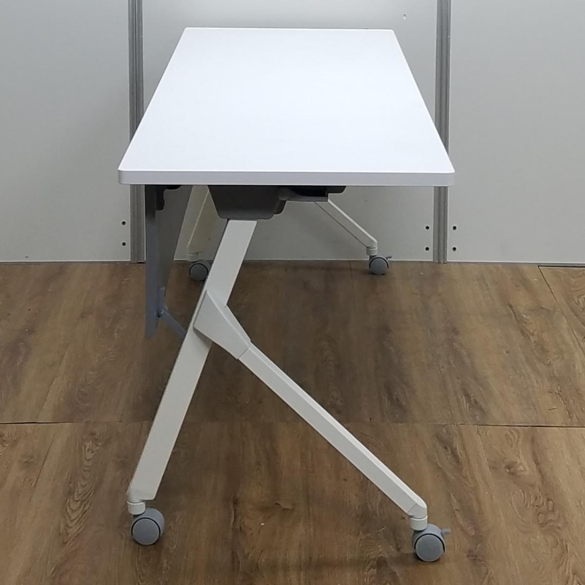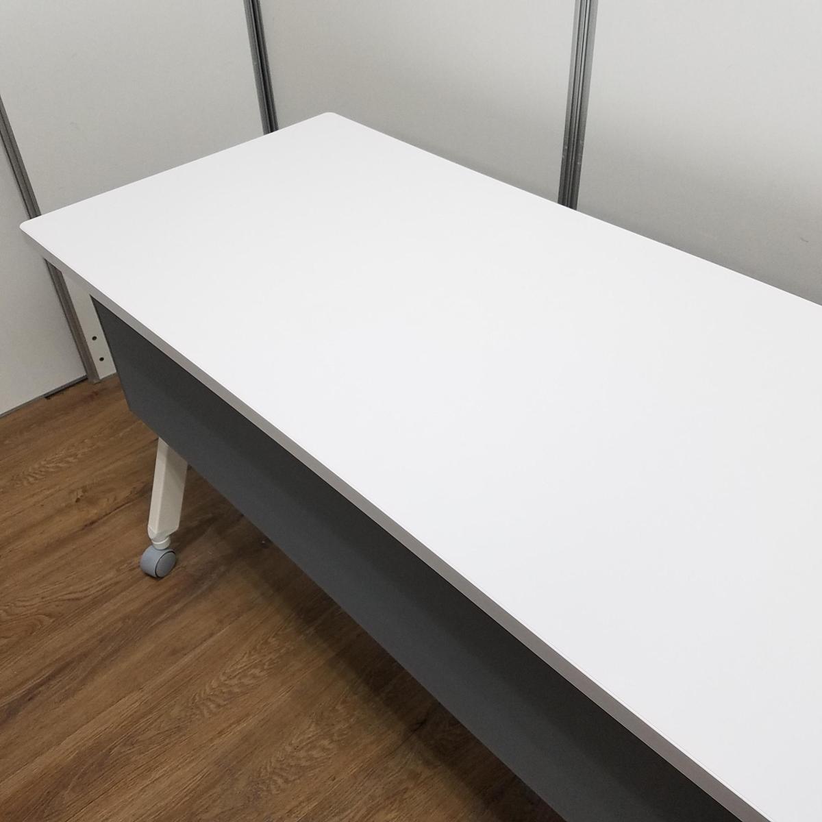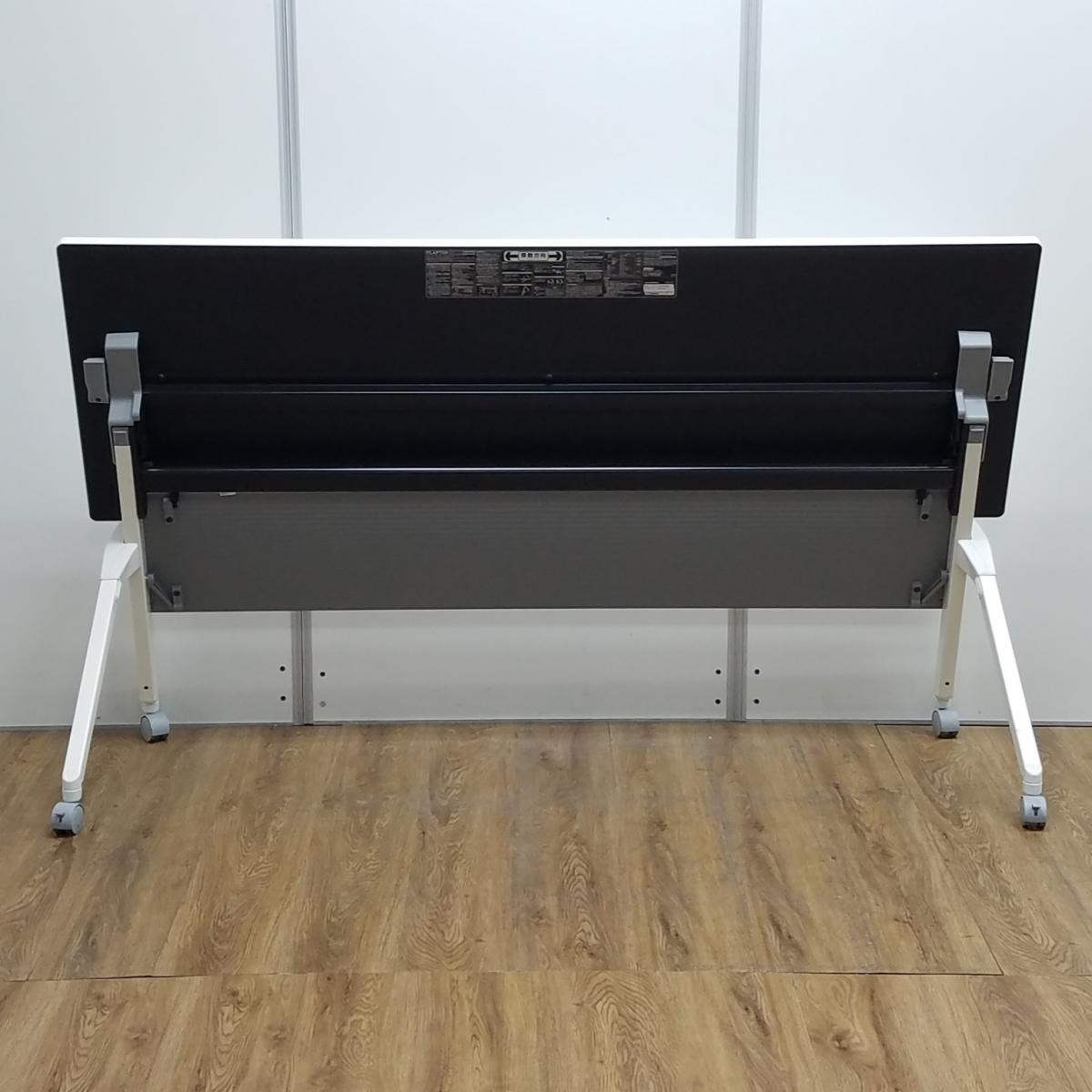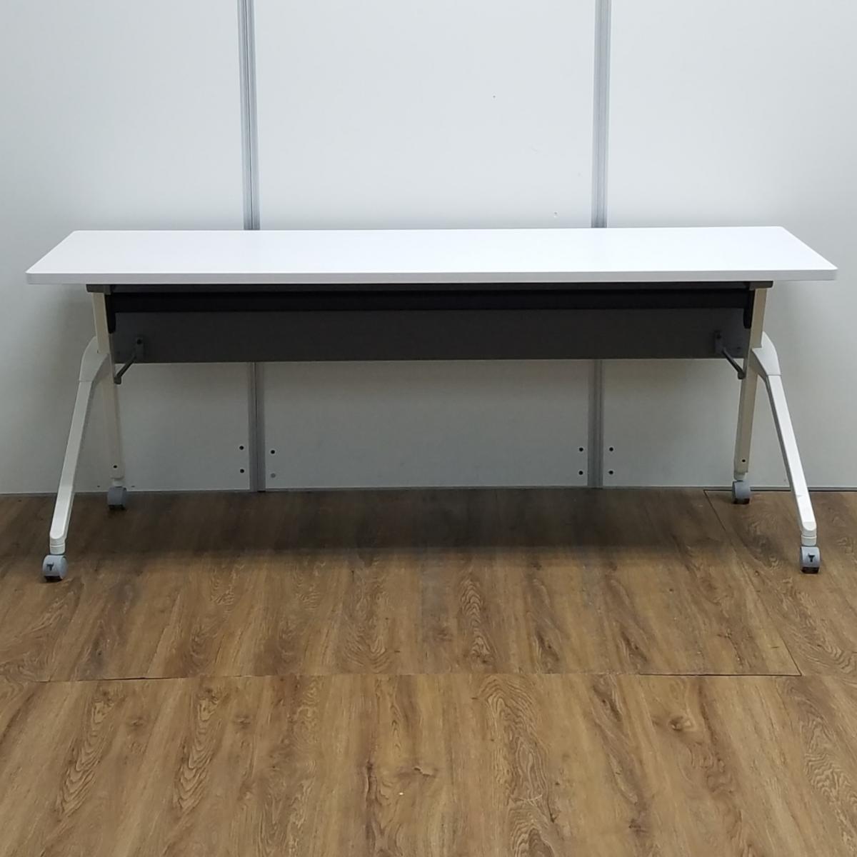 【ロット入荷】オカムラ製 フラプターシリーズ ホワイト W1800/D600/H720サイズ 幕板付 スムーズに移動できるキャスター付きテーブルを便利な折り畳み収納で! W1800サイドスタックテーブル!!- 京都東寺店