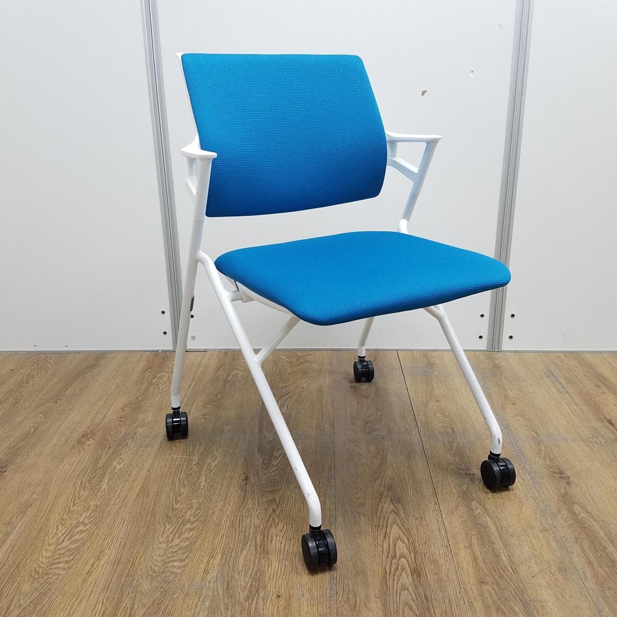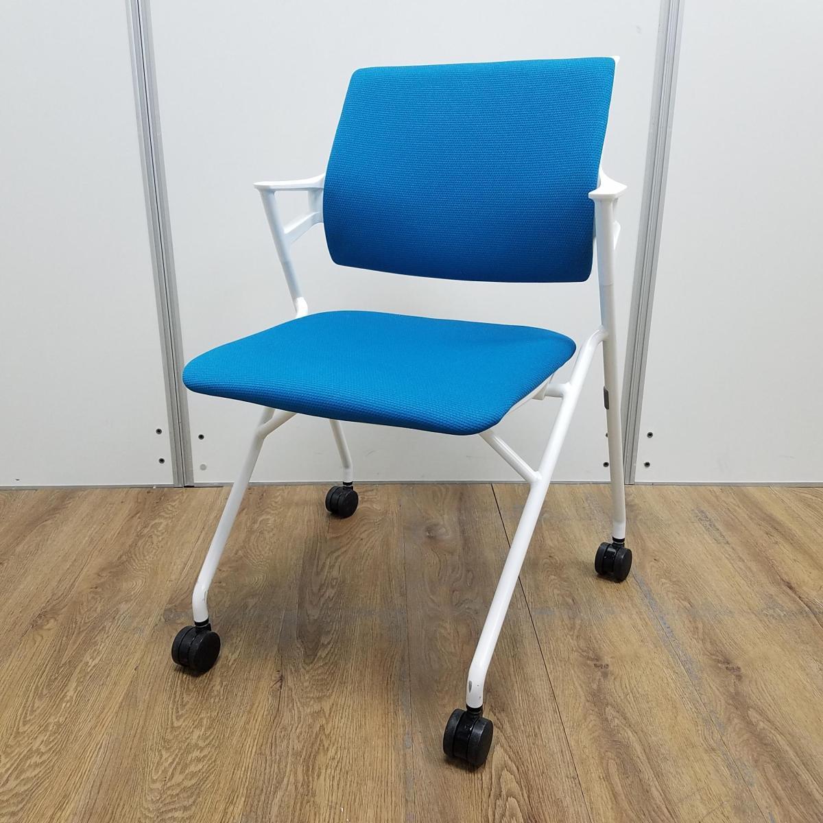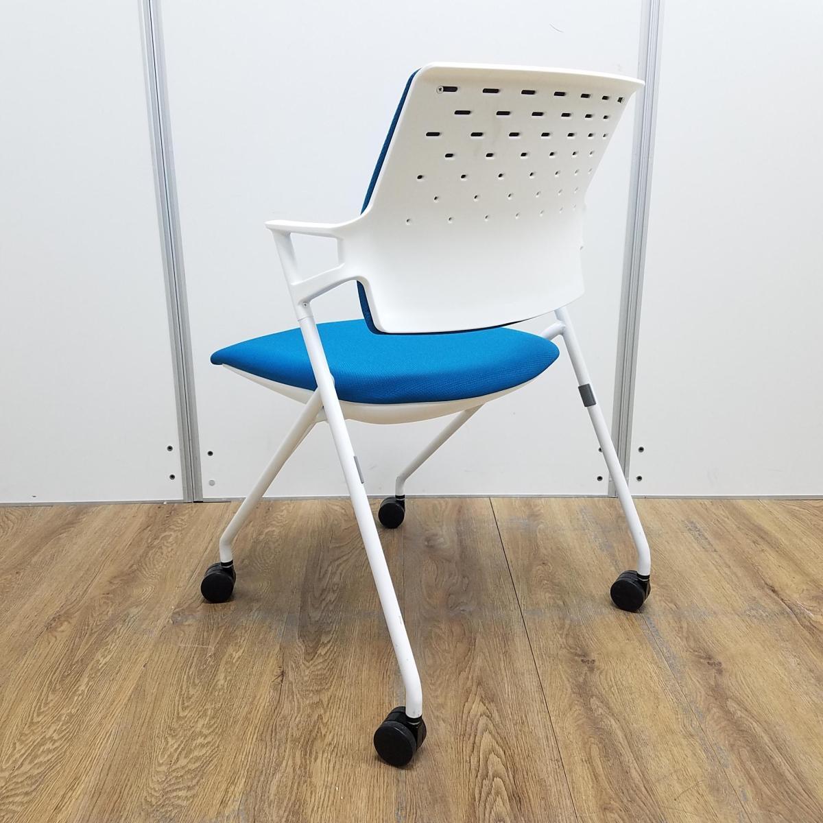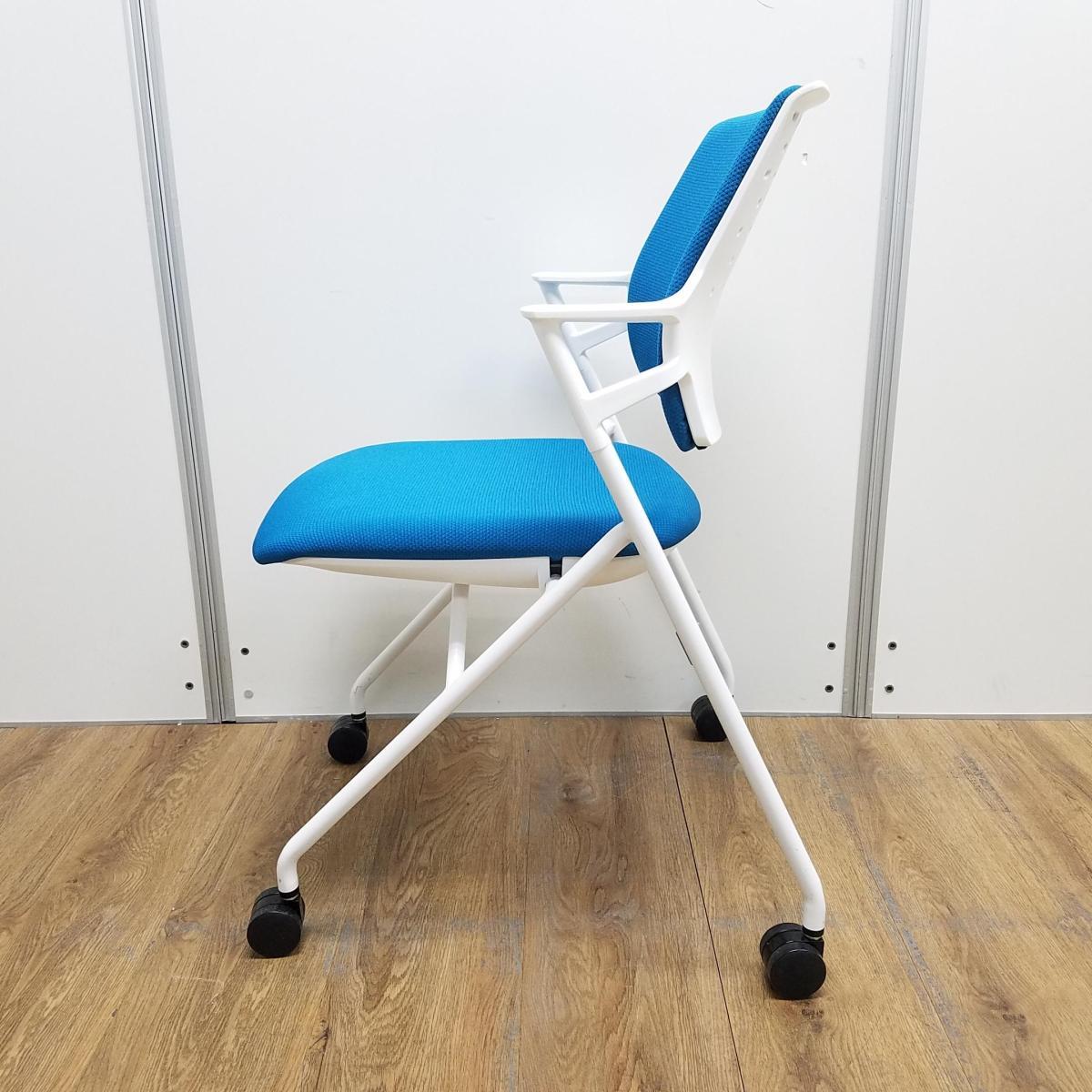 【4脚セット!!】コクヨ製 ピエガシリーズ ターコイズ ホワイトシェル 背もたれクロス ネスティングチェア!!- 京都東寺店