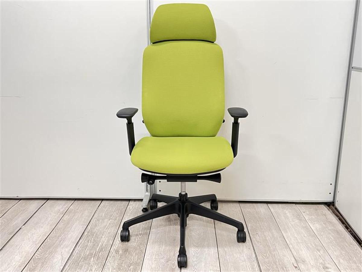 【大人気商品のヘッドレスト付きが入荷しました!】オカムラで1番の売れ筋シリーズ!クッション性豊かでフィット感抜群!前傾機能付きの大人気チェア! ■オカムラ/シルフィー(Sylphy)/ライムグリーン ブラックフレーム エクストラハイバック 可動肘付きサーキュラーバリューCO2削減量の算出について