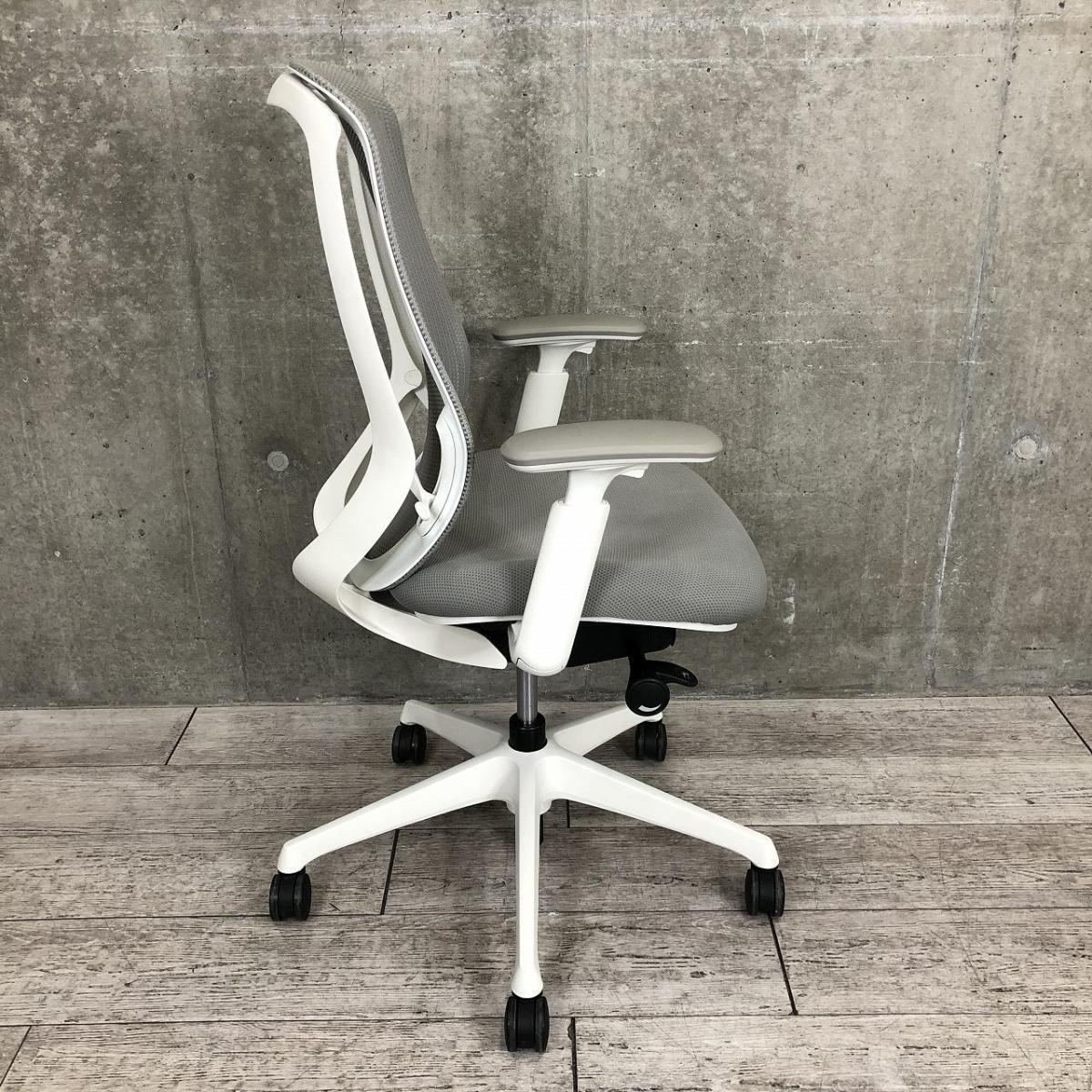 【A01007623】【前傾チルト機能付き大人気メッシュチェア!】■オカムラ(okamura)製 シルフィーチェア(Sylphy) 肘付き ハイバック ■背面メッシュ ■可動肘 ■グレー×ホワイトシェル【IB】サーキュラーバリューCO2削減量の算出について